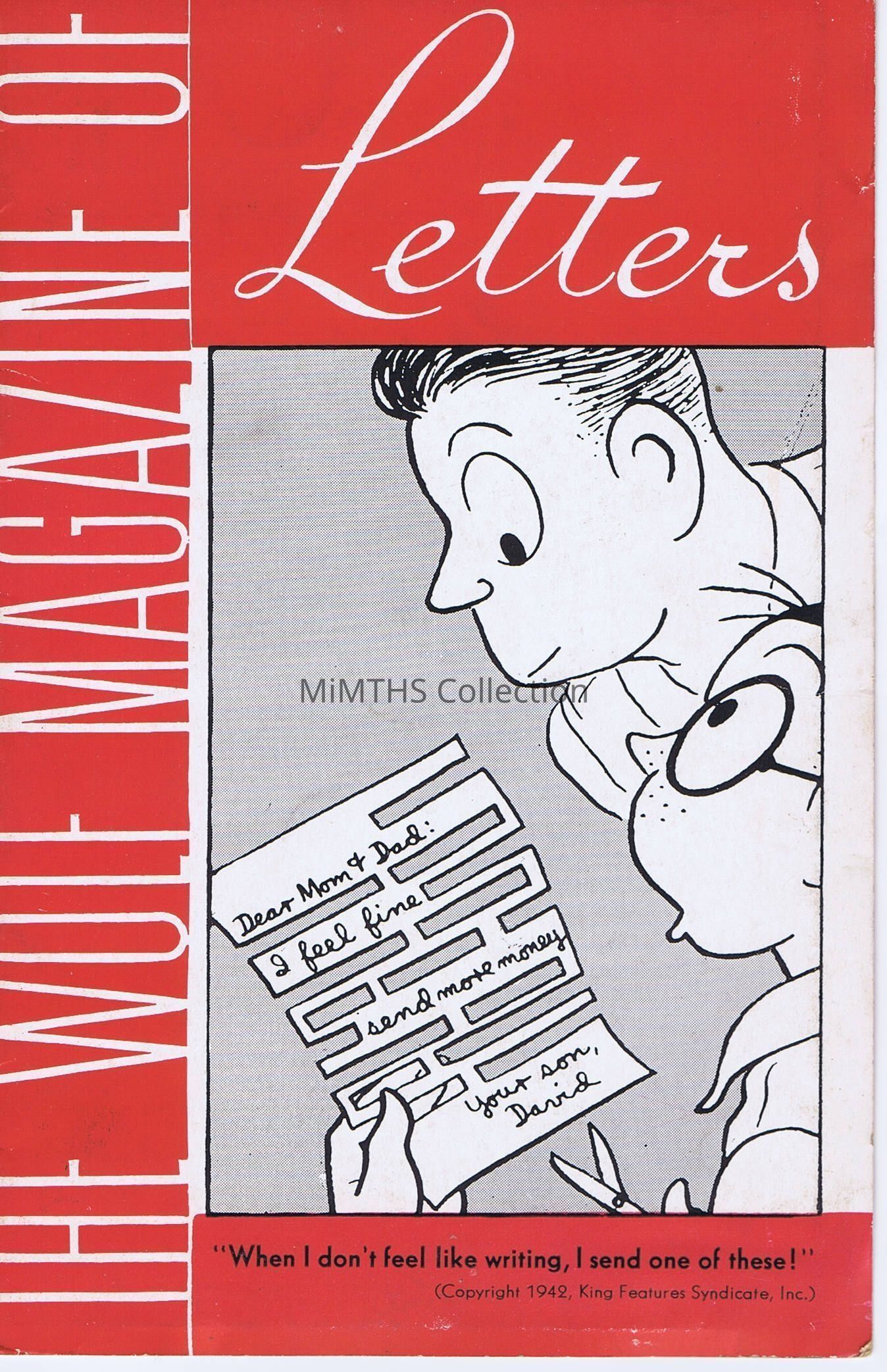 August 1944 copy of The Wolf Magazine of Letters. Printed by the Wolf Detroit Envelope Company.Cataloged By