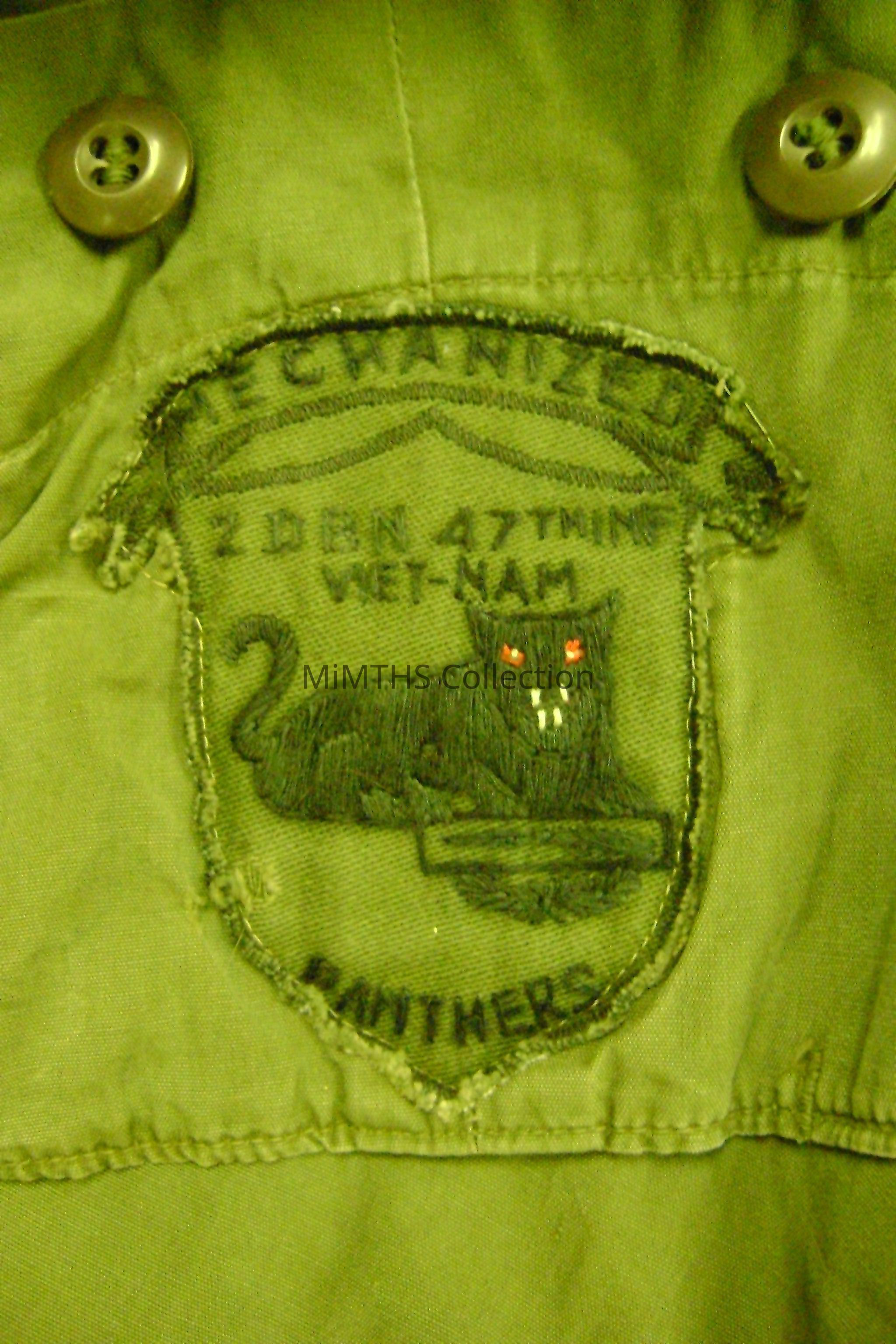 Theater made 2nd btn, 47th Inf, Vietnam Panther patch, velvet pvt insignia