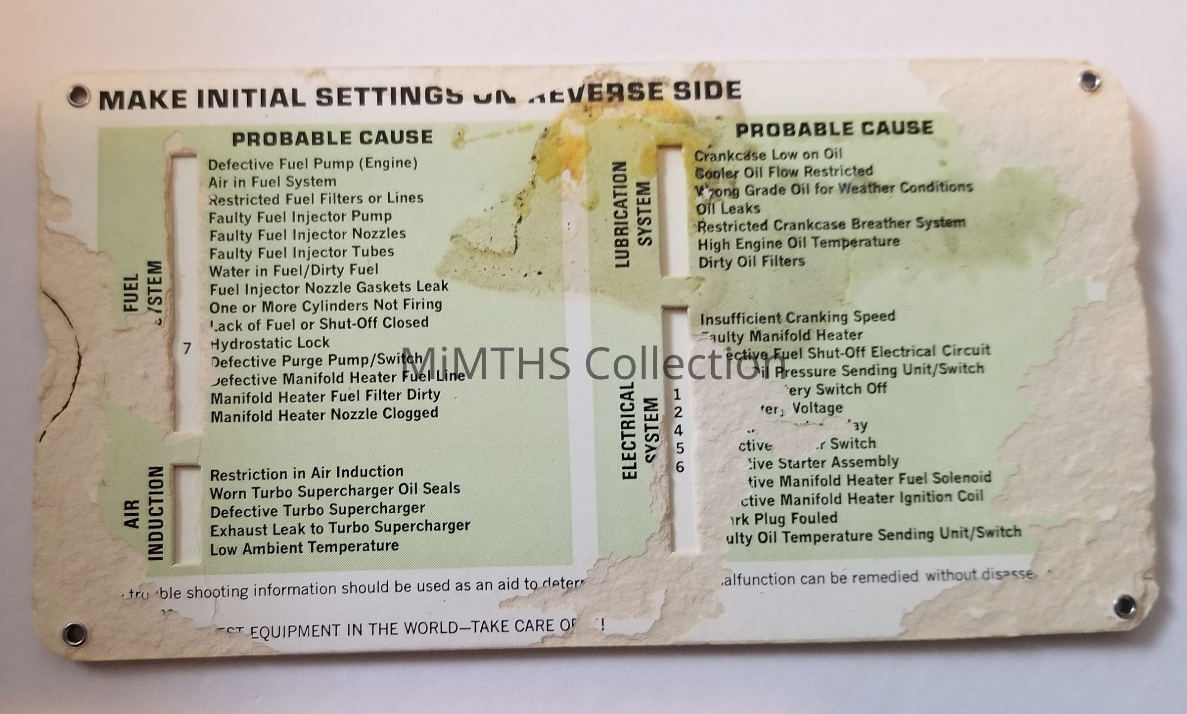 Cardstock slide guide on troubleshooting the M60-M60A1 AVDS 1790-2A Engine printed by the Project manager, M60 tanks, Warren Army Missile Plant, MICataloged By