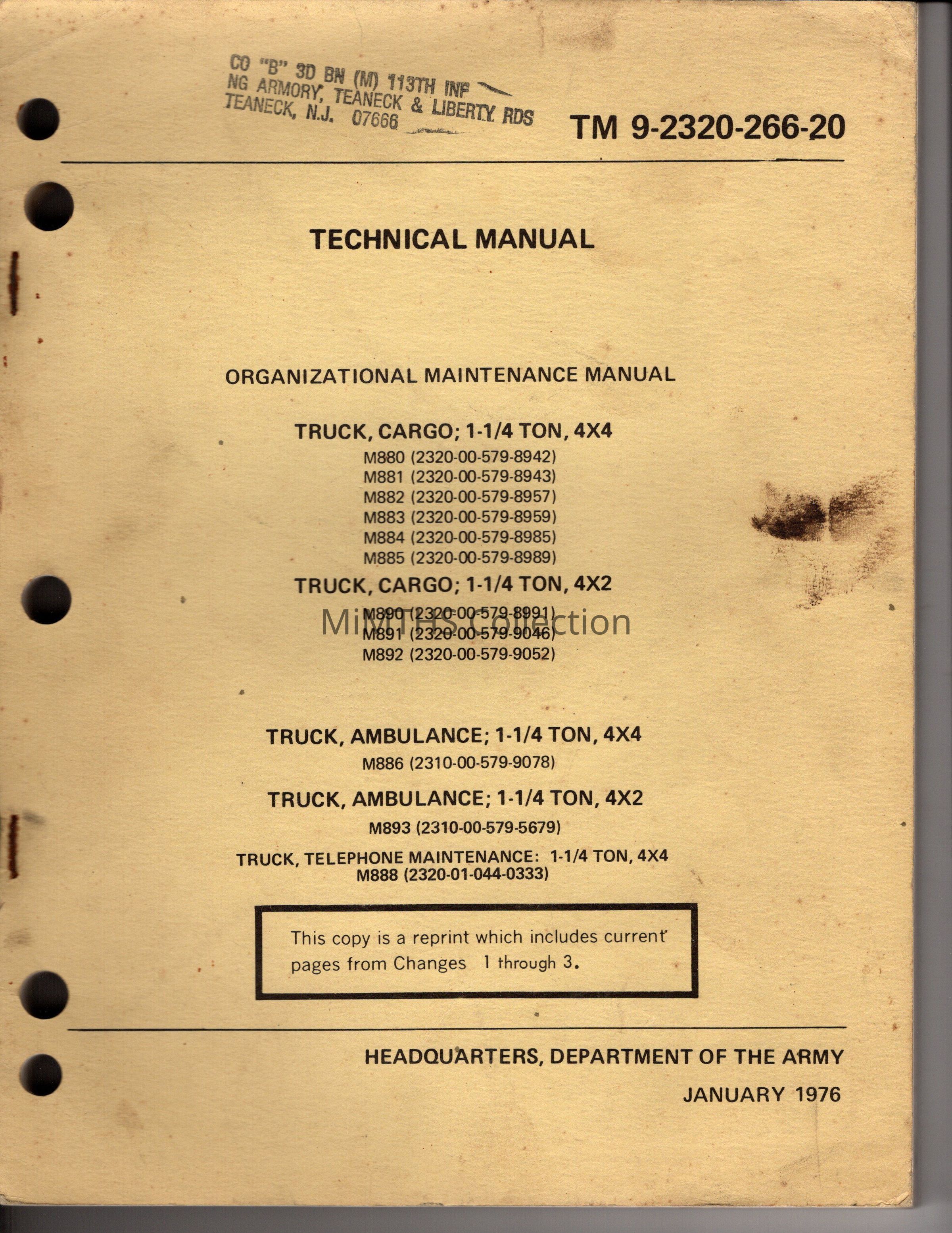 Truck, Cargo; 1-1/4 Ton, 4x4, M880 (2320-00-579-8942), et al