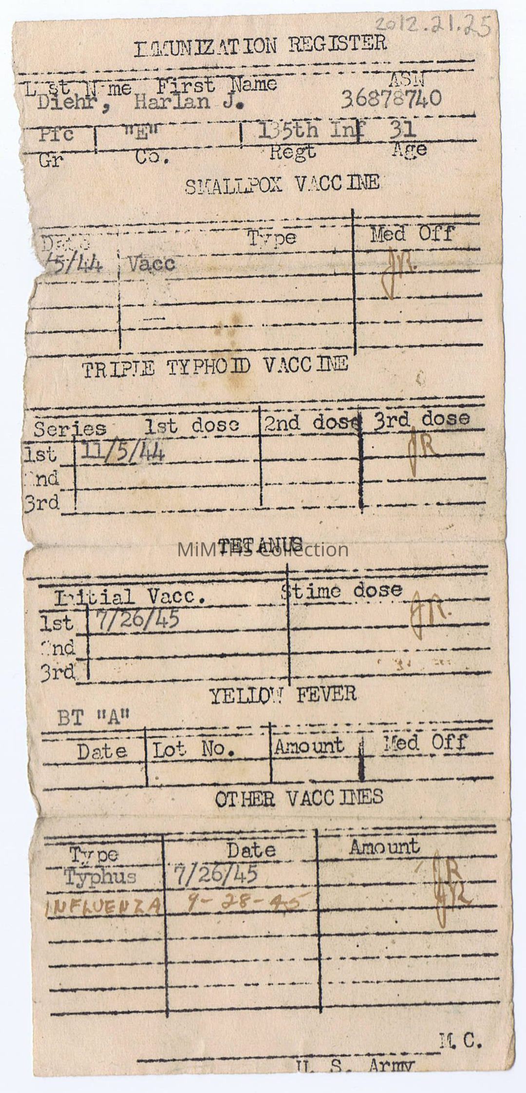 US Army Immunization RegisterEntry/Object ID