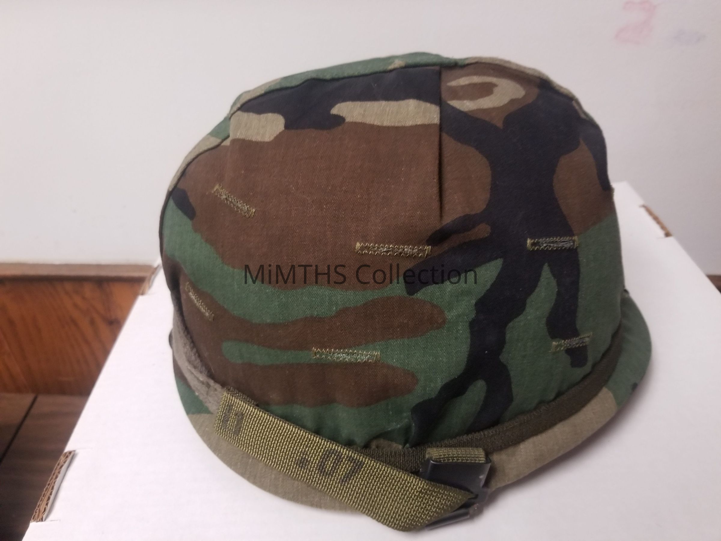 This is a last contract M1 style helmet with woodland cover. New and unissued. Came out of USAF stocks when they switched over to the PASGT helmets.