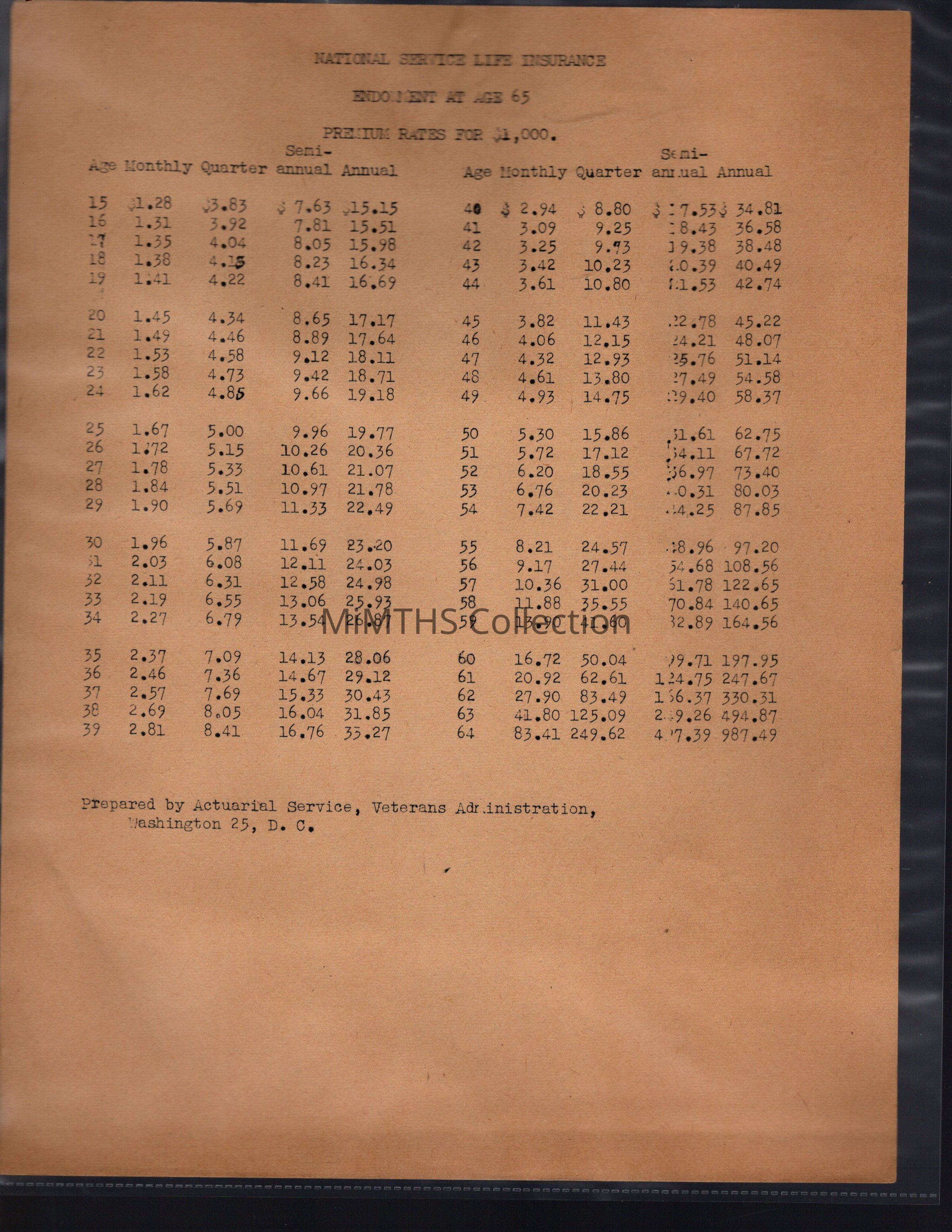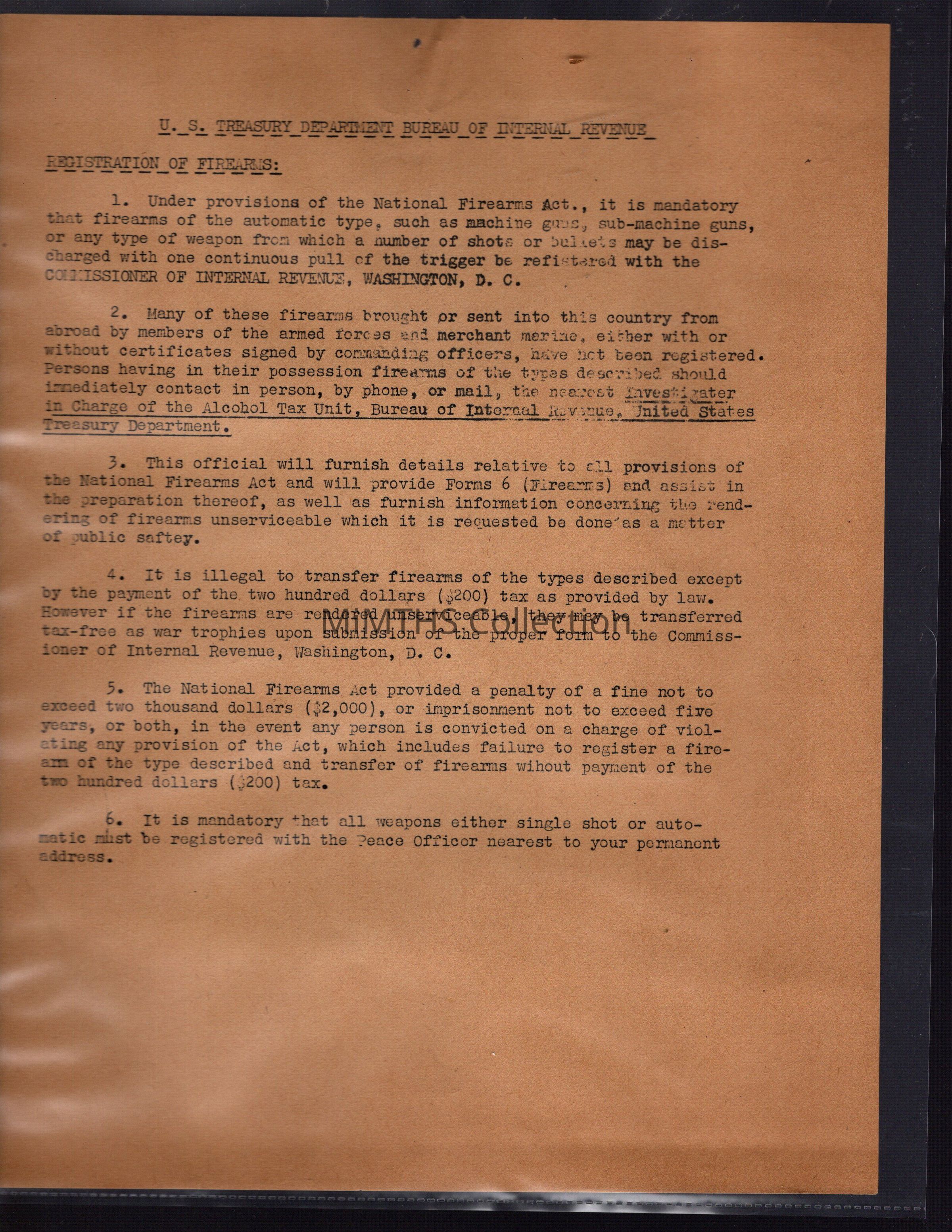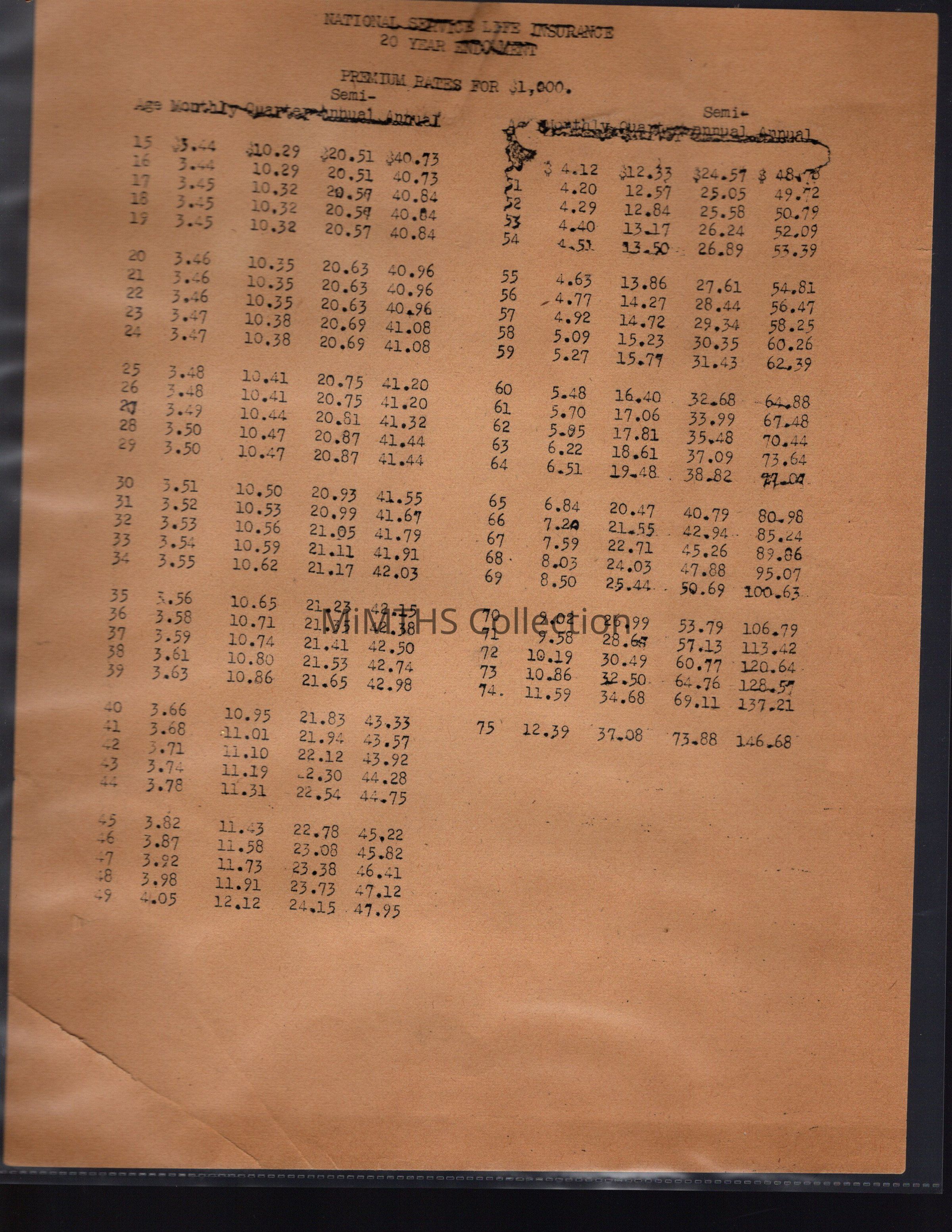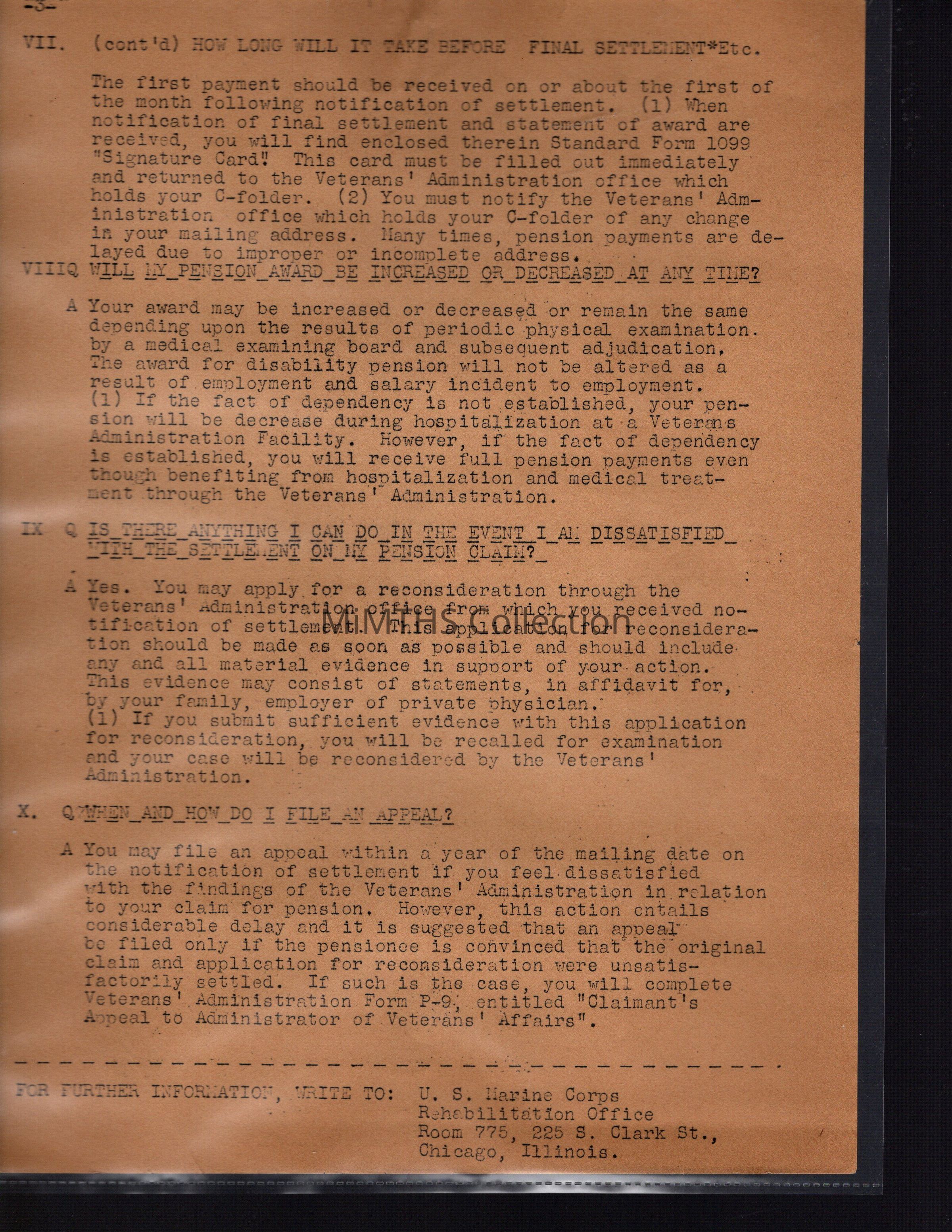 Post Discharge documents from the Marine Corps, includes info on registering war souvenir firearms and National Service Life Insurance endowments and premiums from VA. Seven pages in binder.Cataloged By