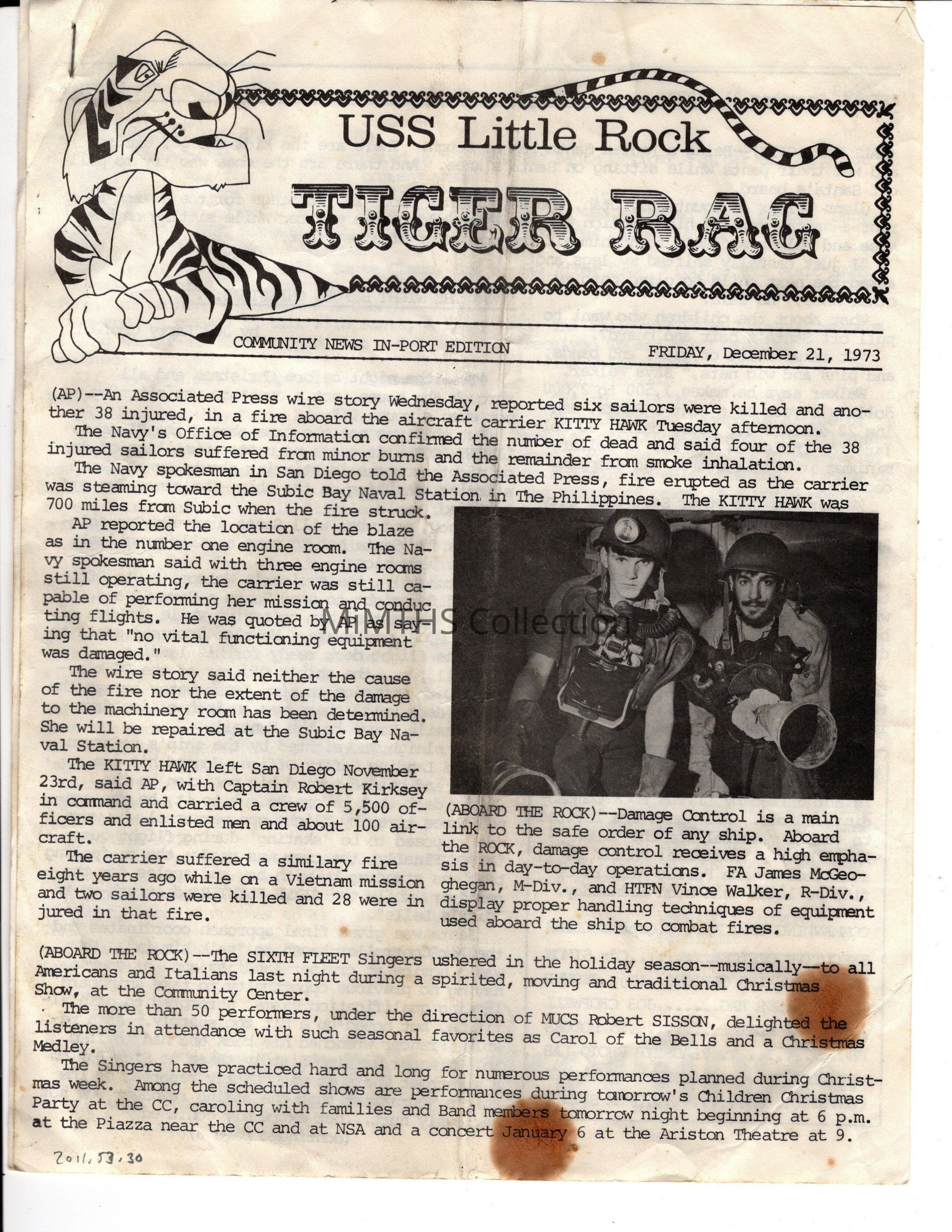 USS Little Rock newsletter "Tiger Rag" dated Dec 21, 1973Cataloged By