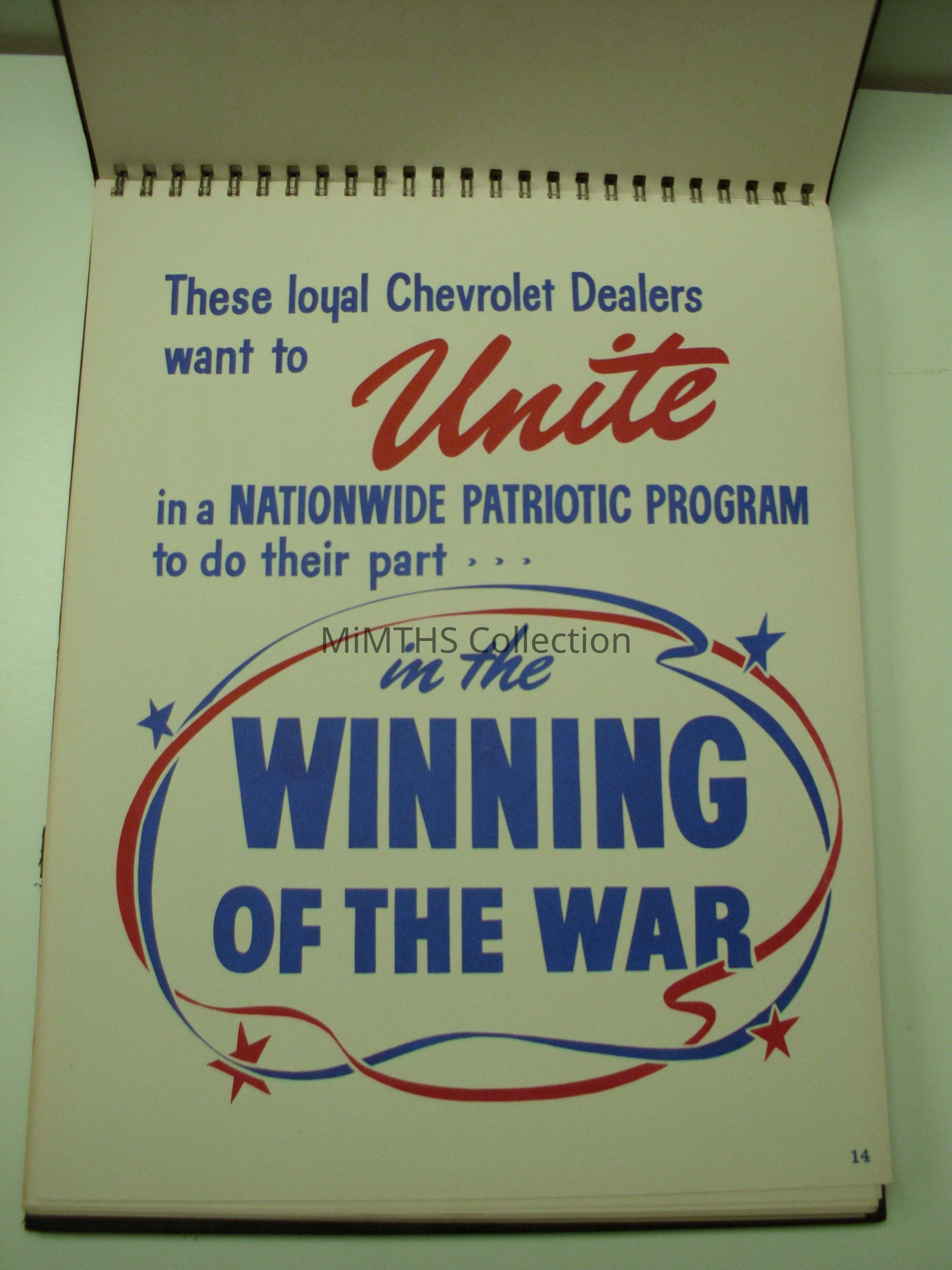 8.5x11 64 page flip chart for the Chevrolet Victory Service League.
