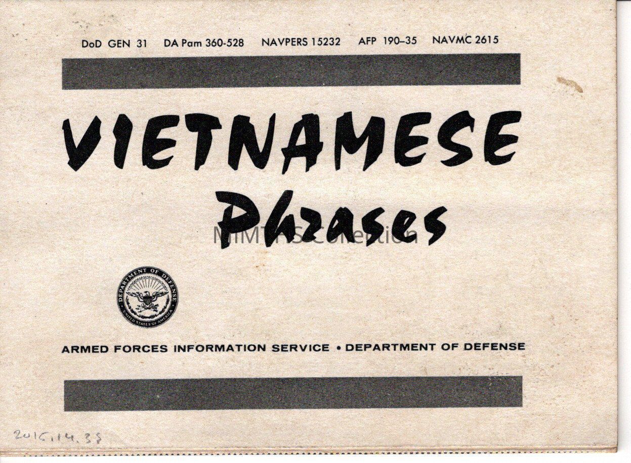 Fold out of Vietnamese Phrases printed by the Armed Forces information Service, DoD.