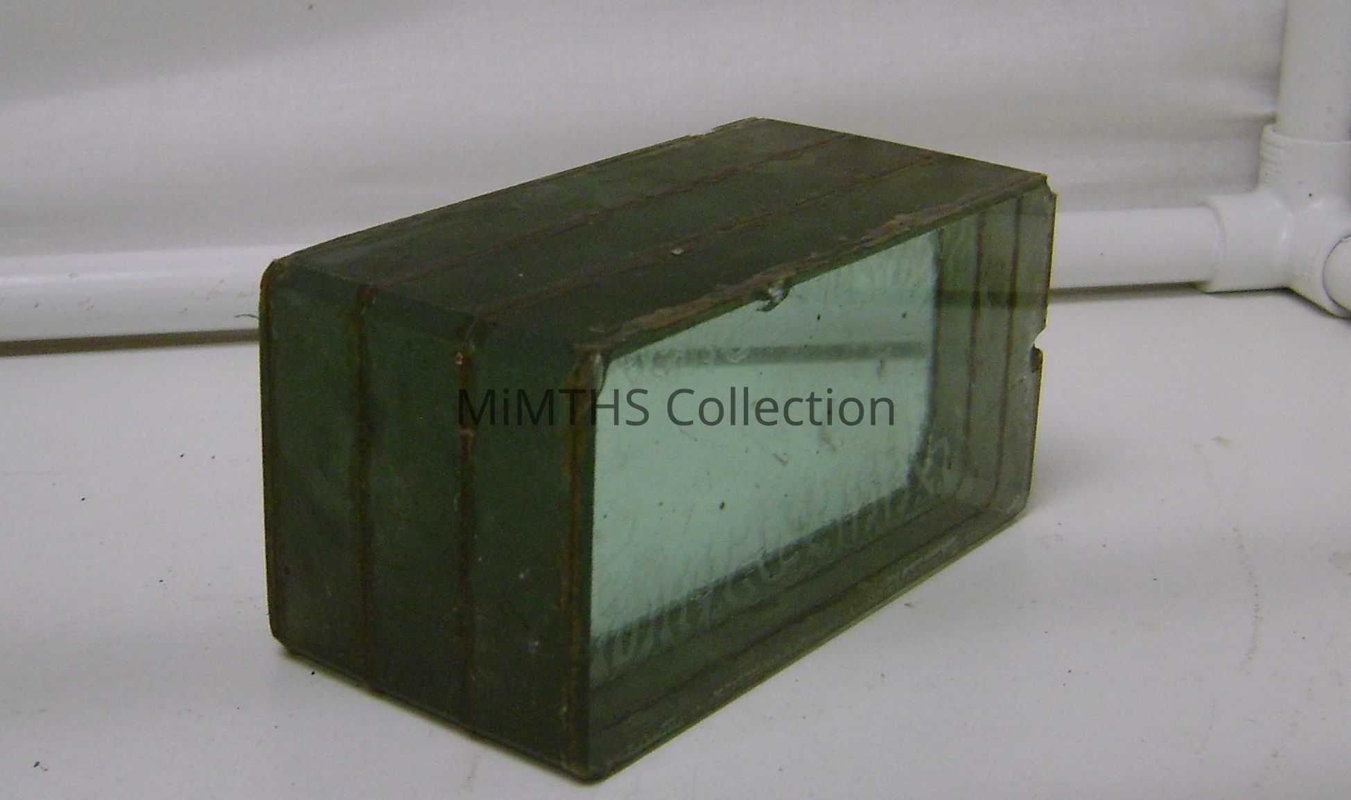 6"x3" triple laminated 3" thick piece of vision port glass from an unknown vehicle. Donor indicated it was locally made. Possibly Cadillac GAge?Cataloged By