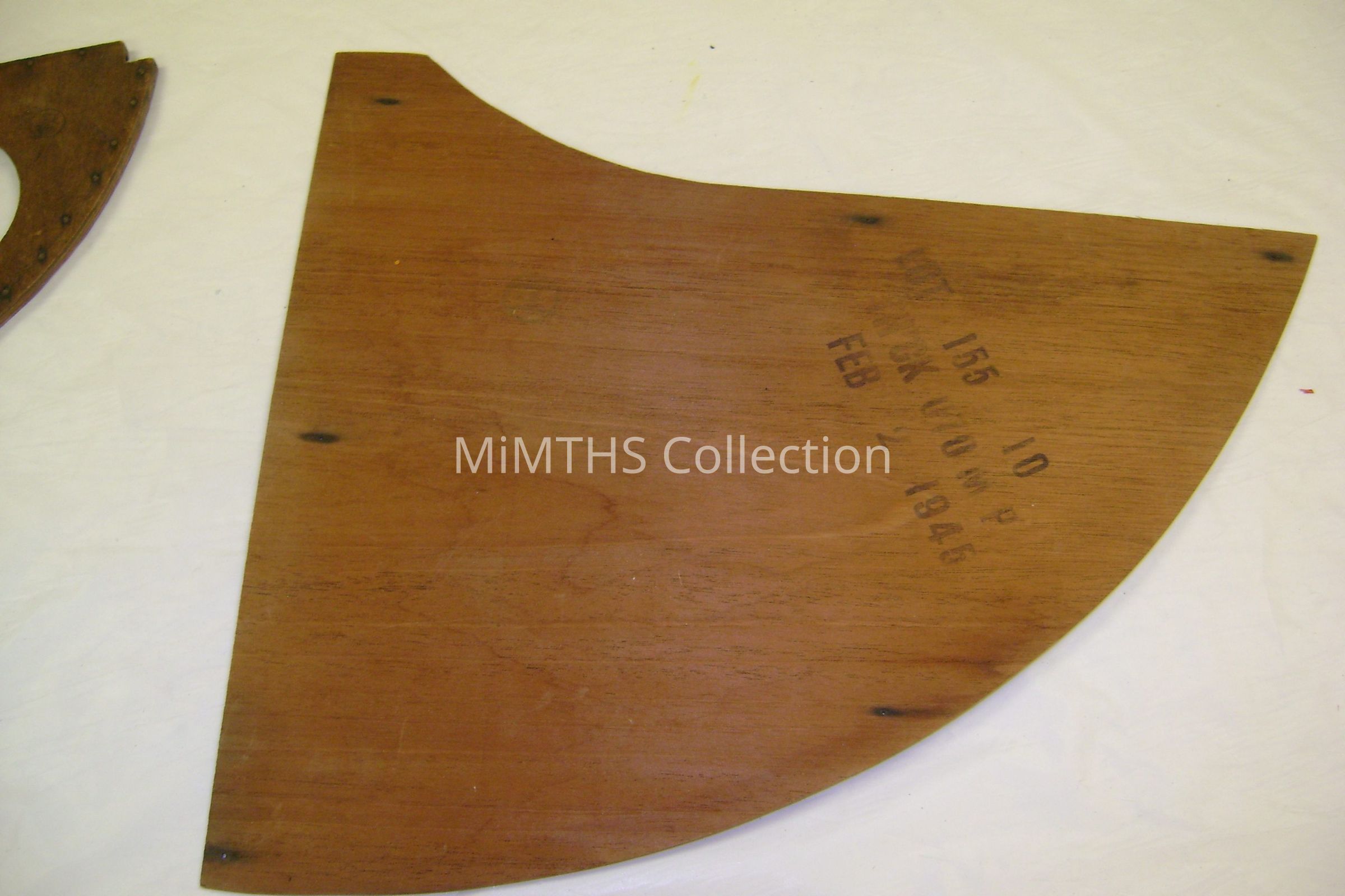 Wood horizontal stabillizer rib for a Waco CG-4A glider. Part came from the Ford Iron Mountain plant.