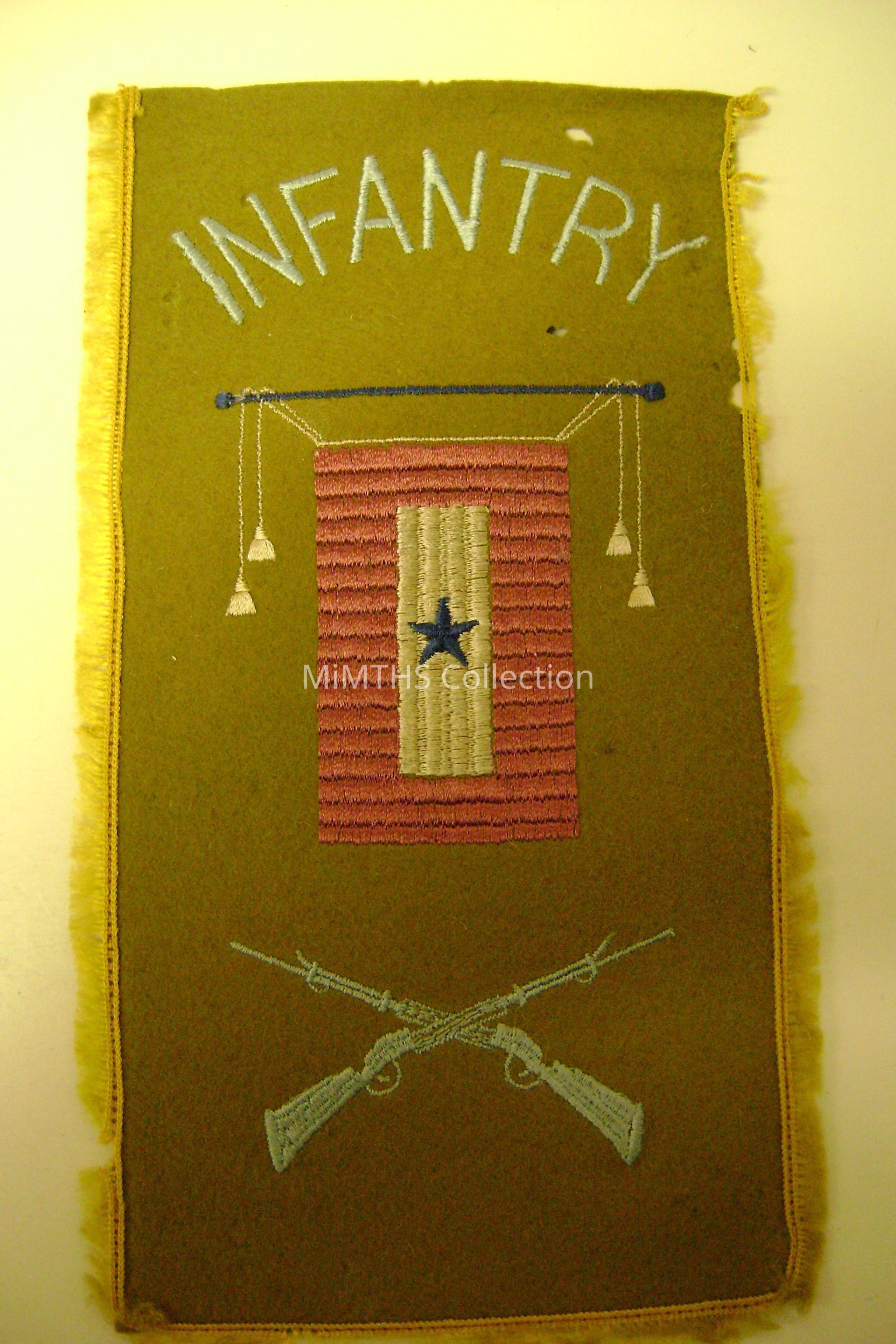 approx 6"x12" fringed blue star banner "Infantry" WWI style.Cataloged By