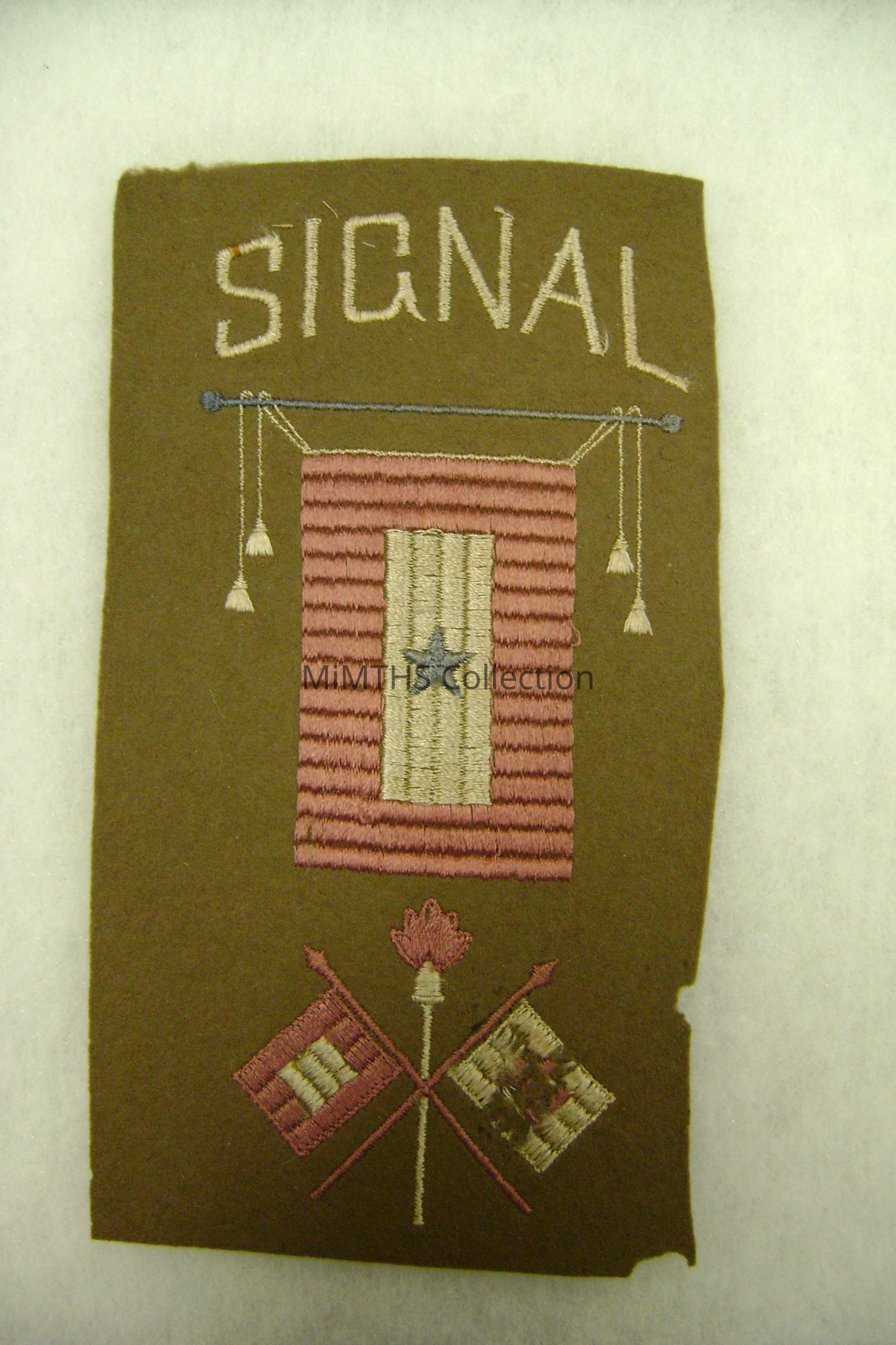 approx 5"x9" fringed blue star banner "Signals" WWI style.Cataloged By