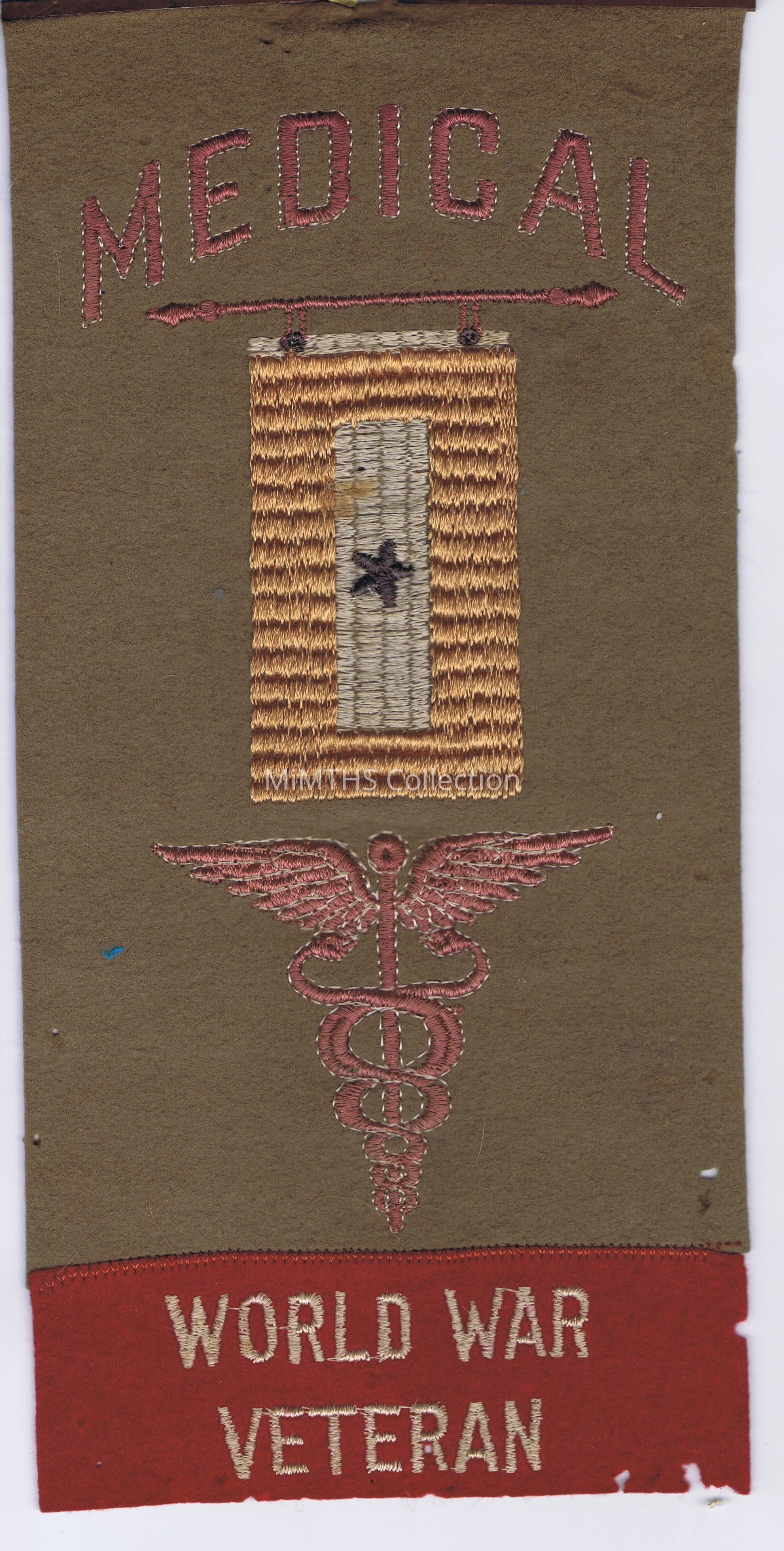 WWI Blue Star pennant for medical with a Veteran bar added for post war displayCataloged By