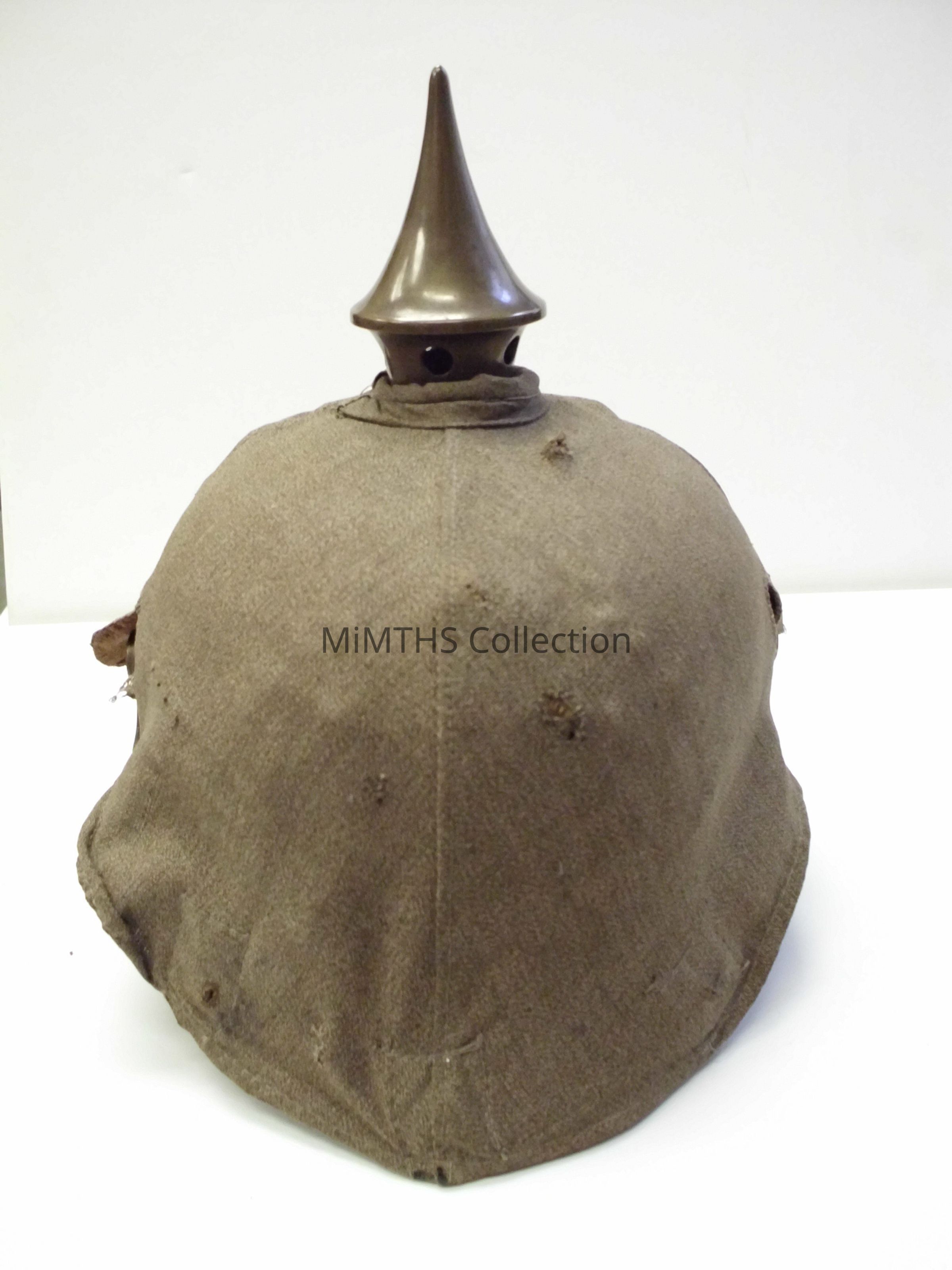 WWI German "Pickelhaube" from a Bavarian Unit, helmet has green cloth combat cover