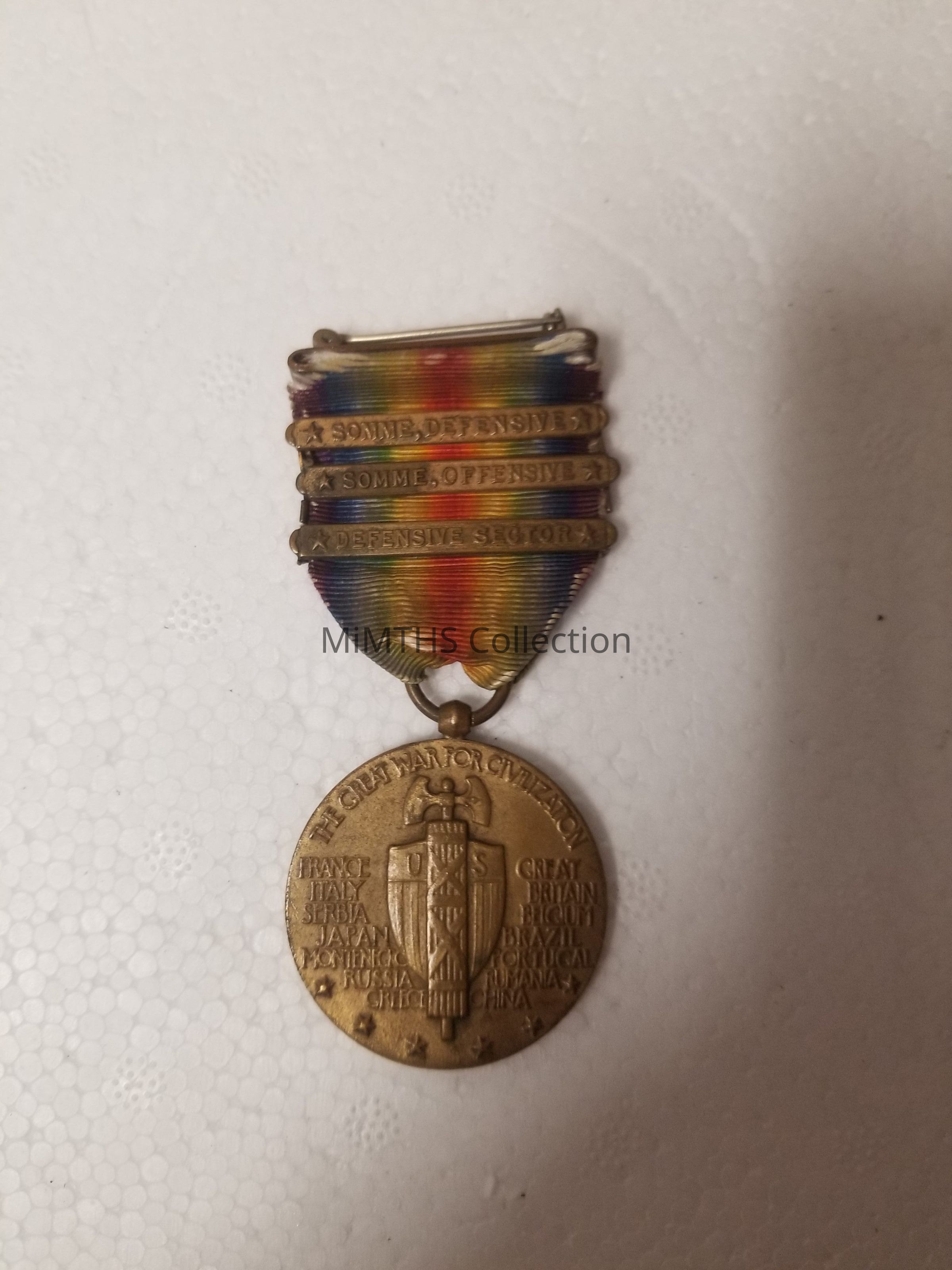 WWI Victory Medal belonging to Lee Alfred Charland with Somme Defensive Somme Offensive and Defensive Sector clasps.