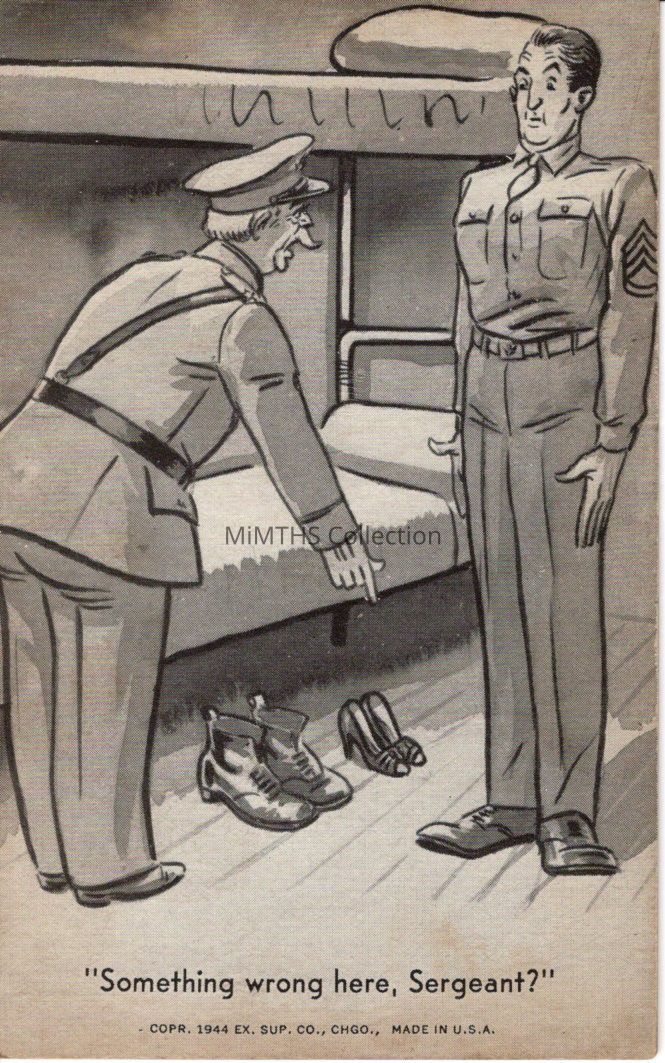 5.5"x3.5" postcard, WWII with girl humorCataloged By