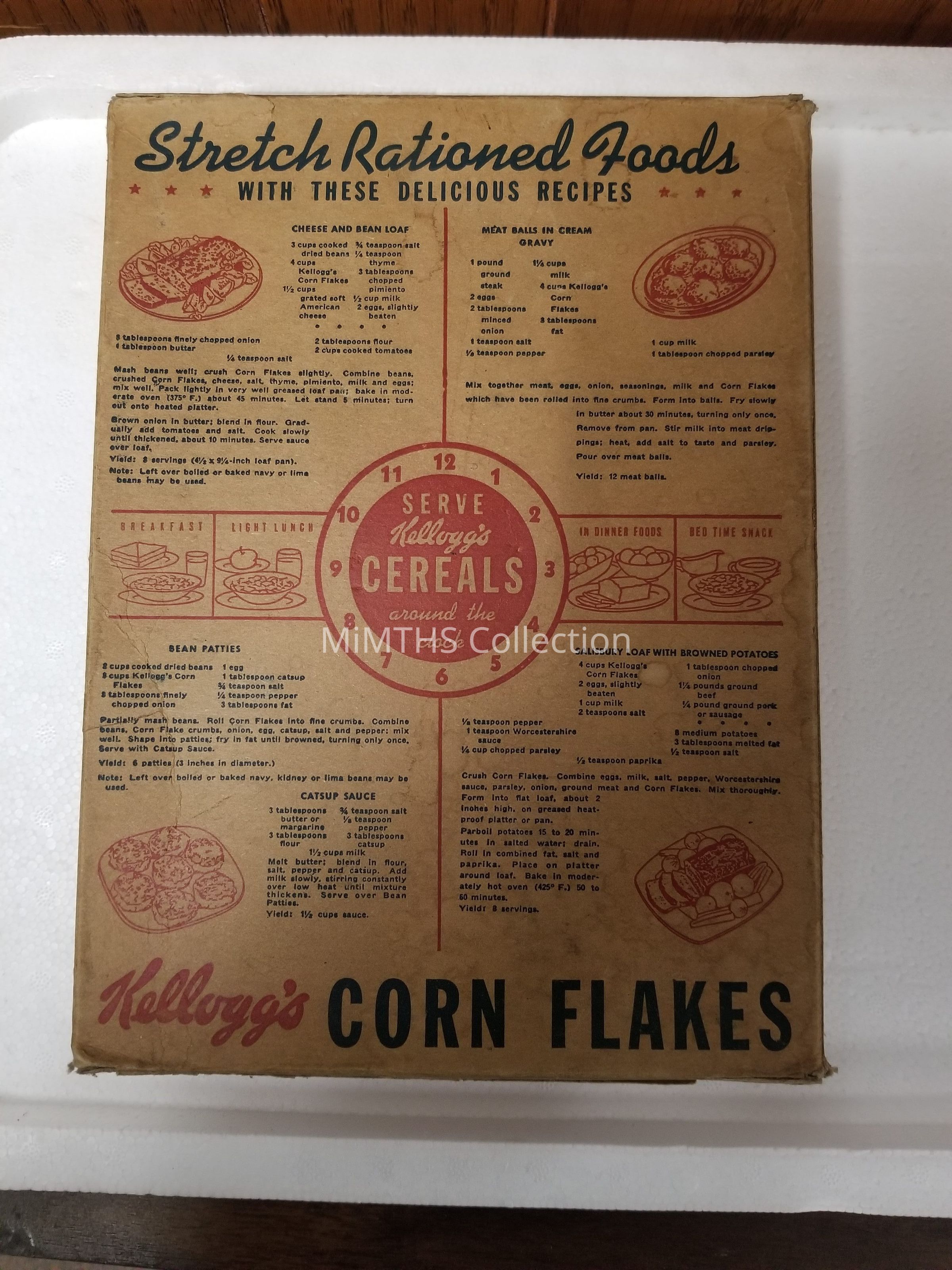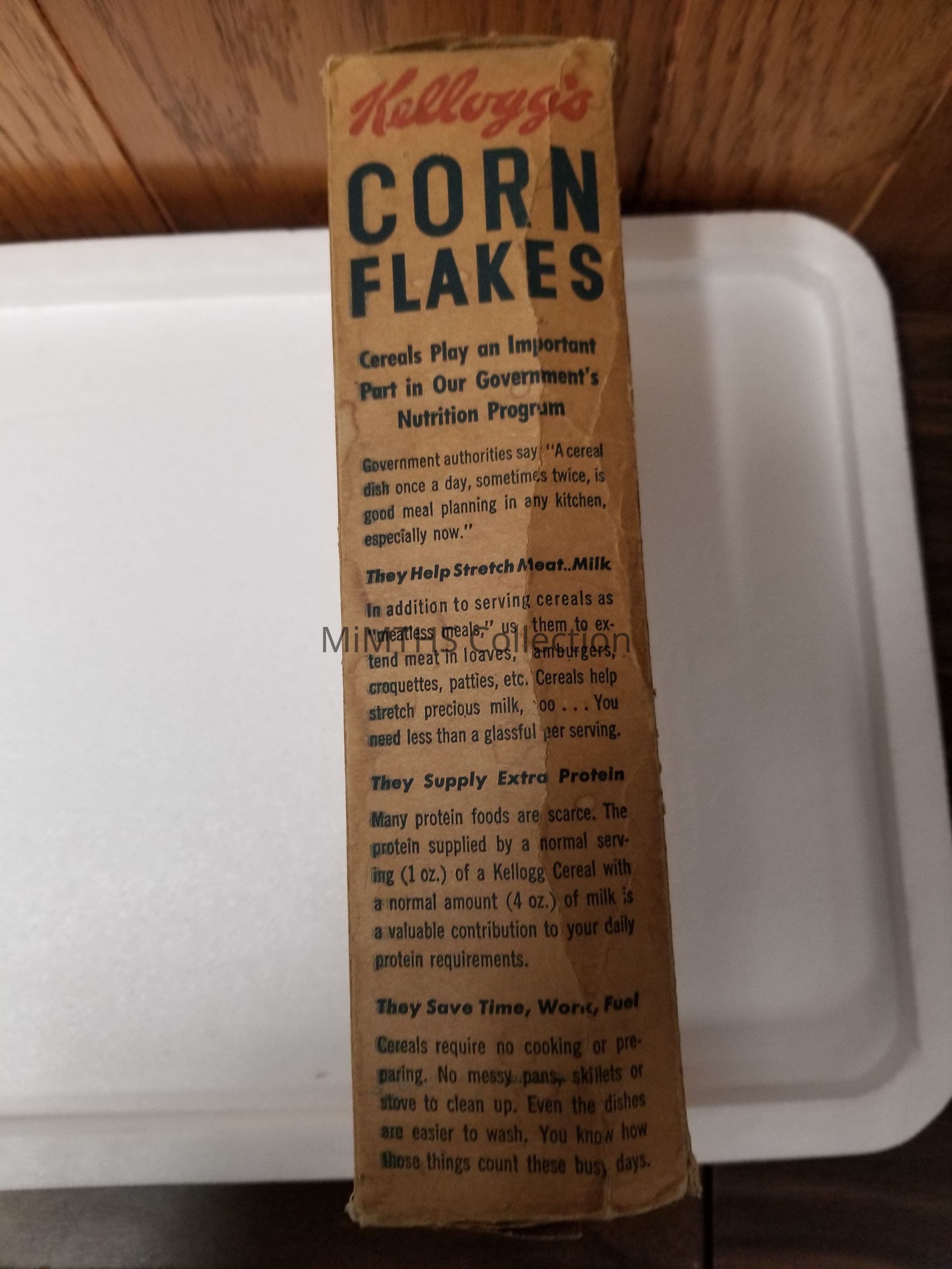 WWII Era box for Kellogg's Corn Flakes. Has Rationing tips on back.