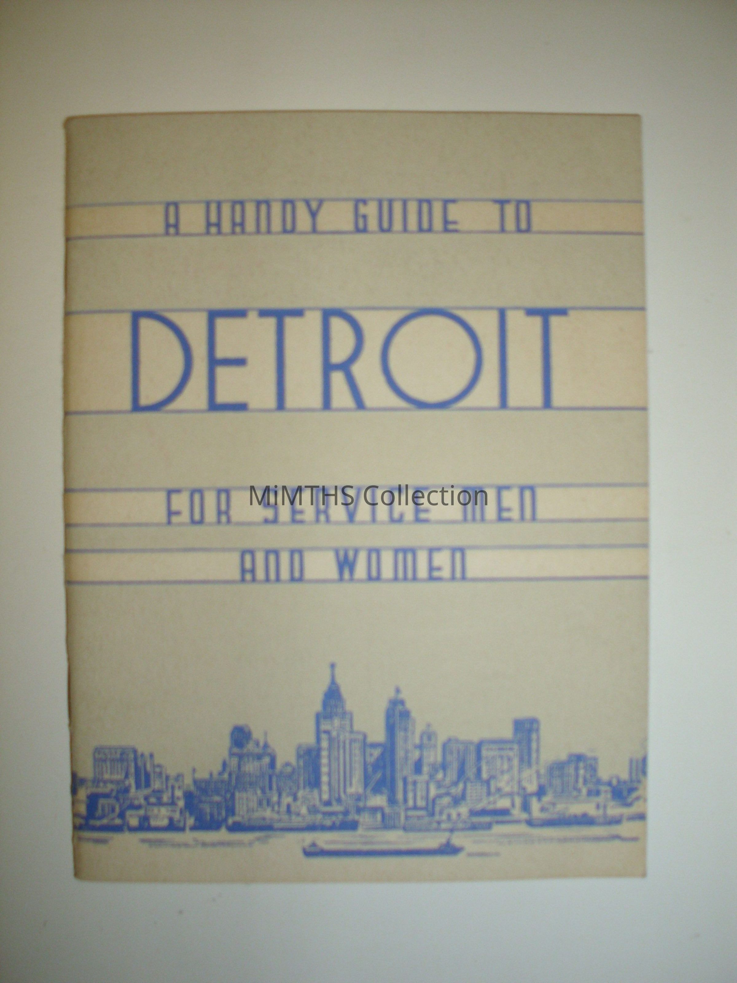 4.5x6" 40 page booklet "A Handy Guide to Detroit for Service Men and Women" printed by Michigan Bell printed in 1945Cataloged By