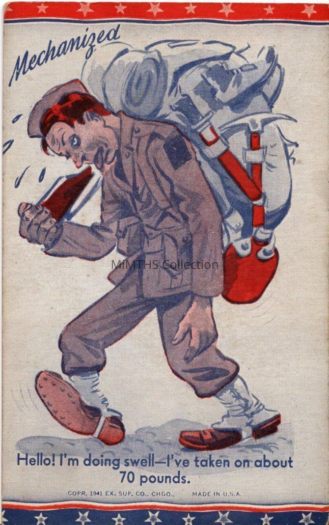 5.5"x3.5" postcard, WWII with humorCataloged By