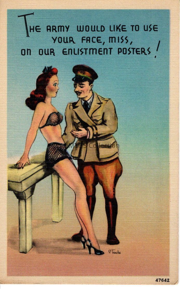 5.5"x3.5" postcard, WWII with girlie humorCataloged By