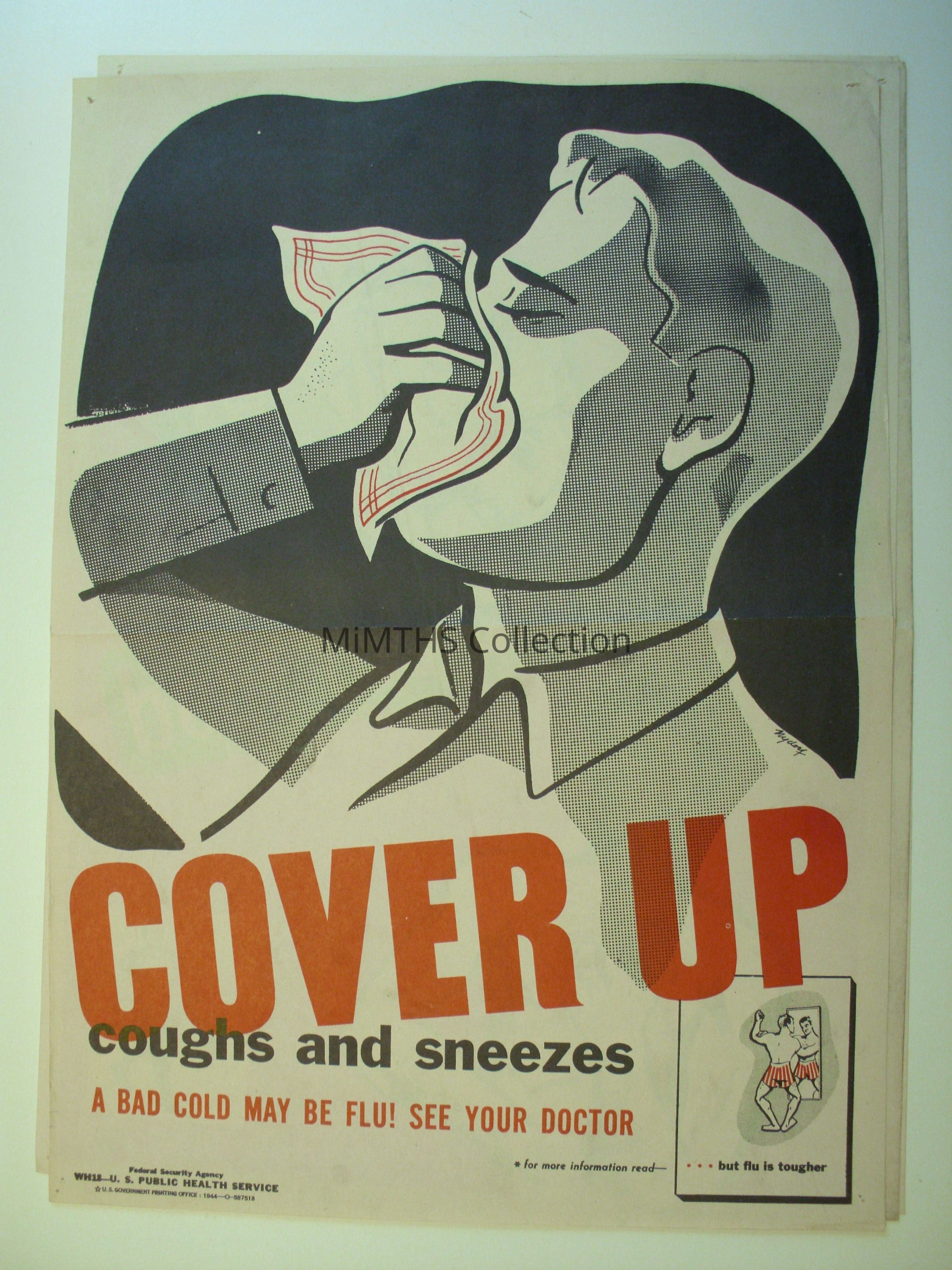 Poster on Cold and flu prevention printed by the Federal Security Agency, US Public Health Service, Us Govt Printing Office in 1944.Cataloged By