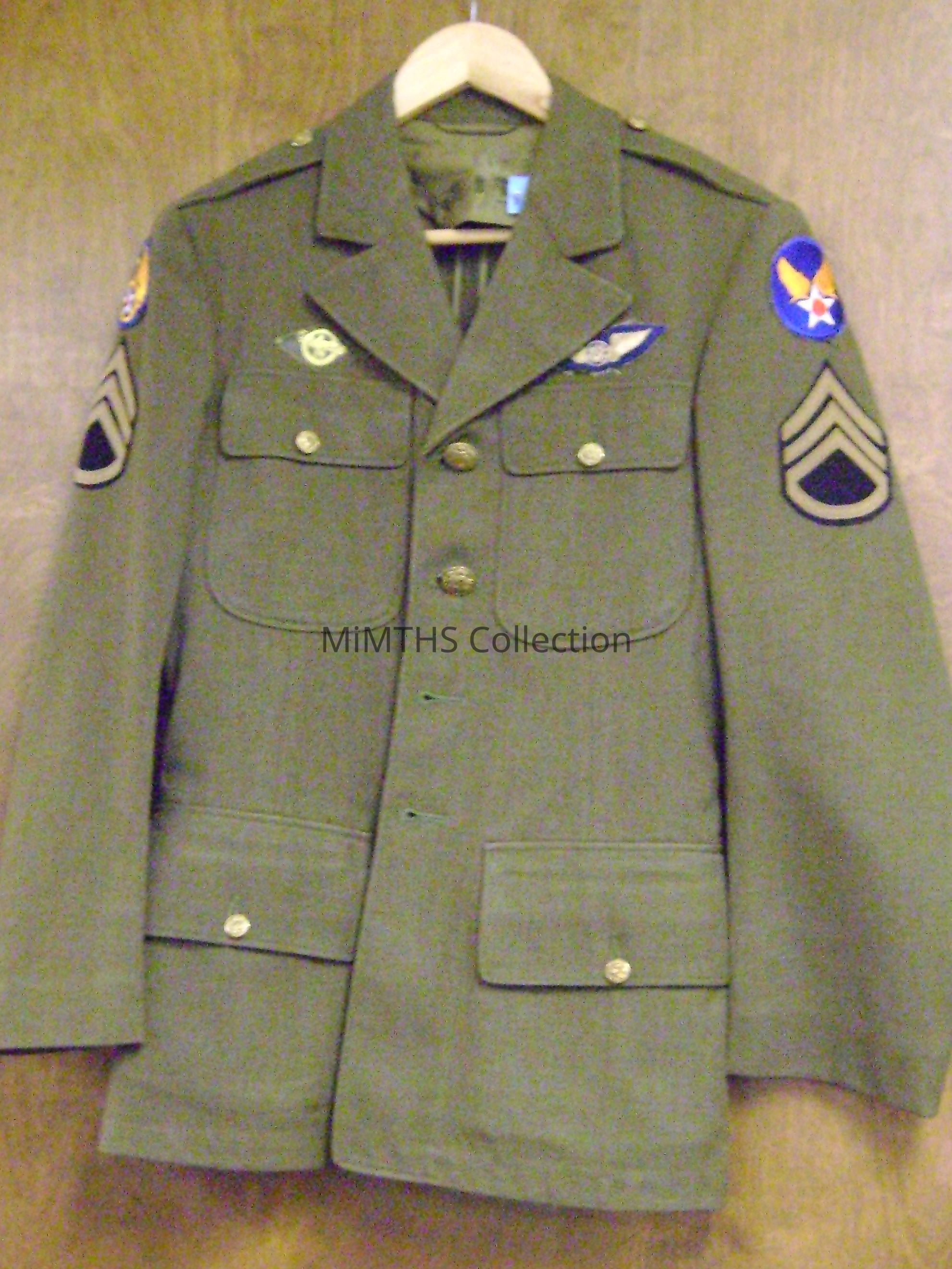 Post-war double patches, ruptured duck, theater made wings. sgt patches.Cataloged By