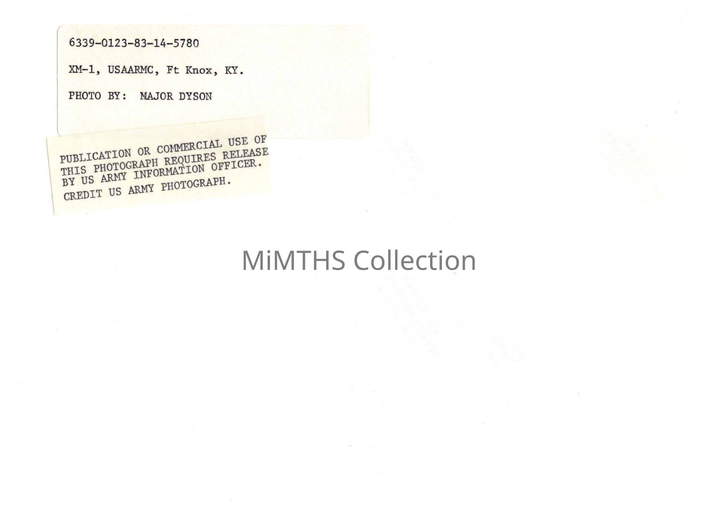 Original photo of an XM1 Abrams at Ft. Knox. Captioned on back.Photograph Details