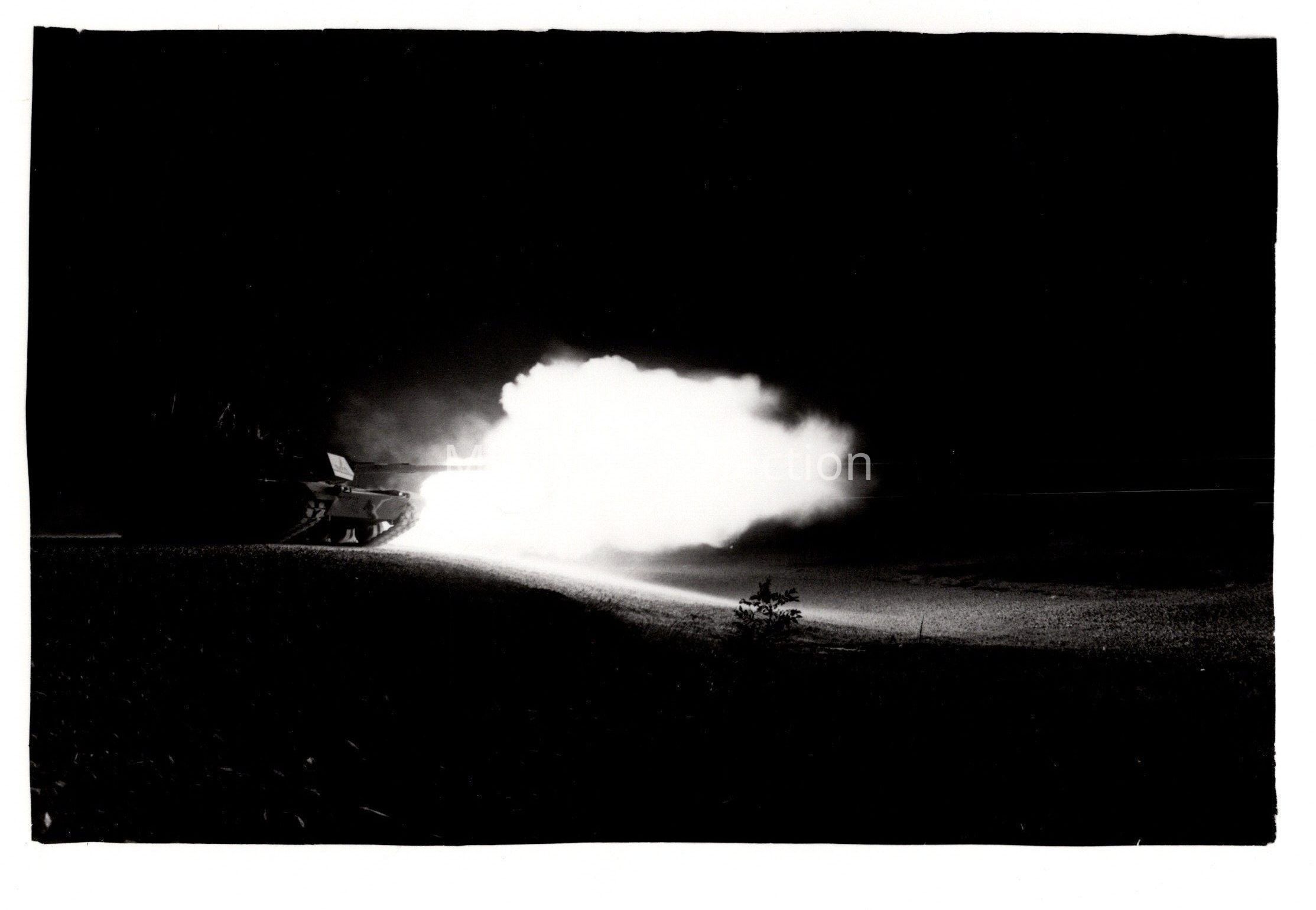 Original B&W photo of an XM1 Abrams Pilot Vehicle night firingPhotograph Details