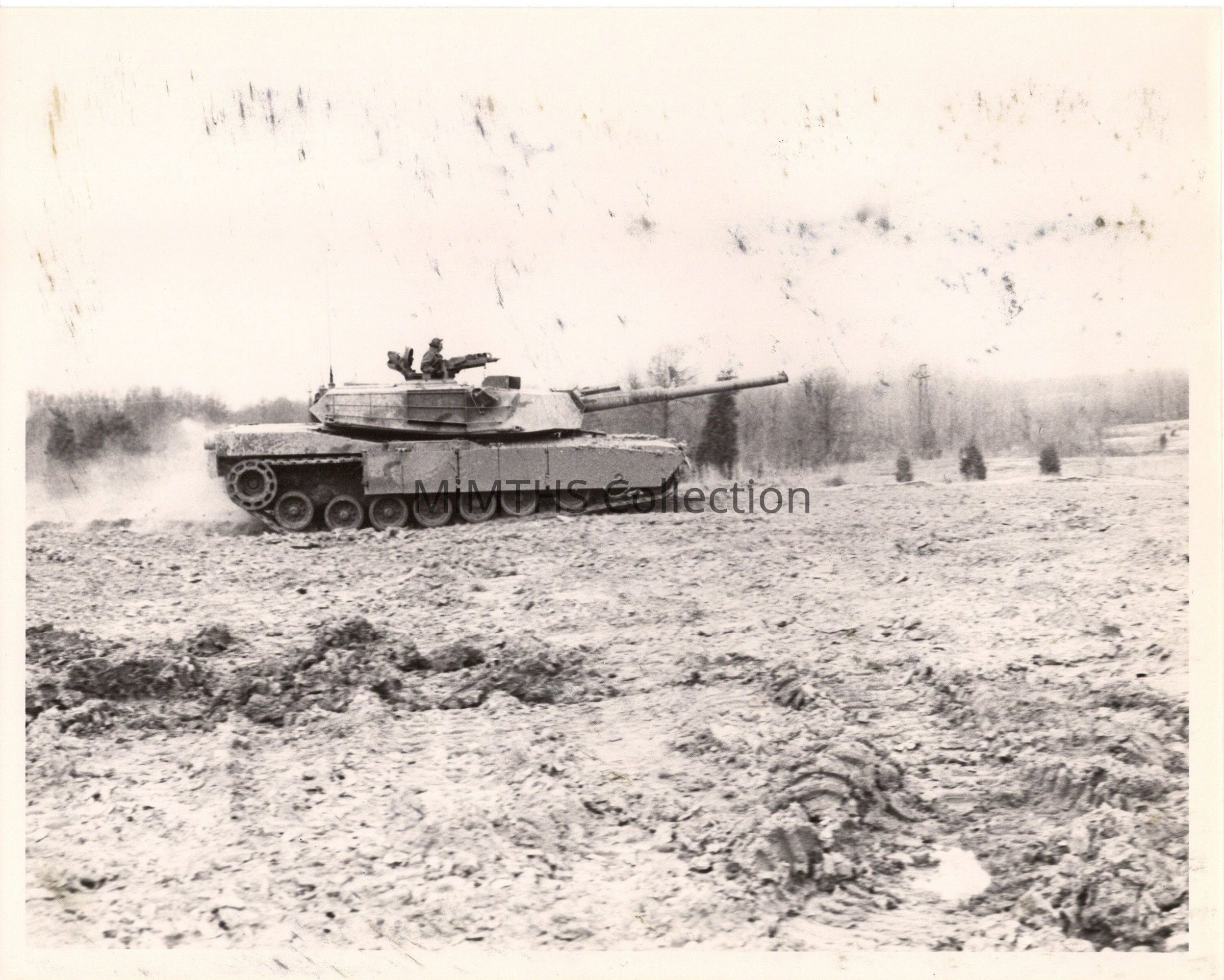 Original B&W photo of an XM1 Abrams Pilot Vehicle in mudPhotograph Details
