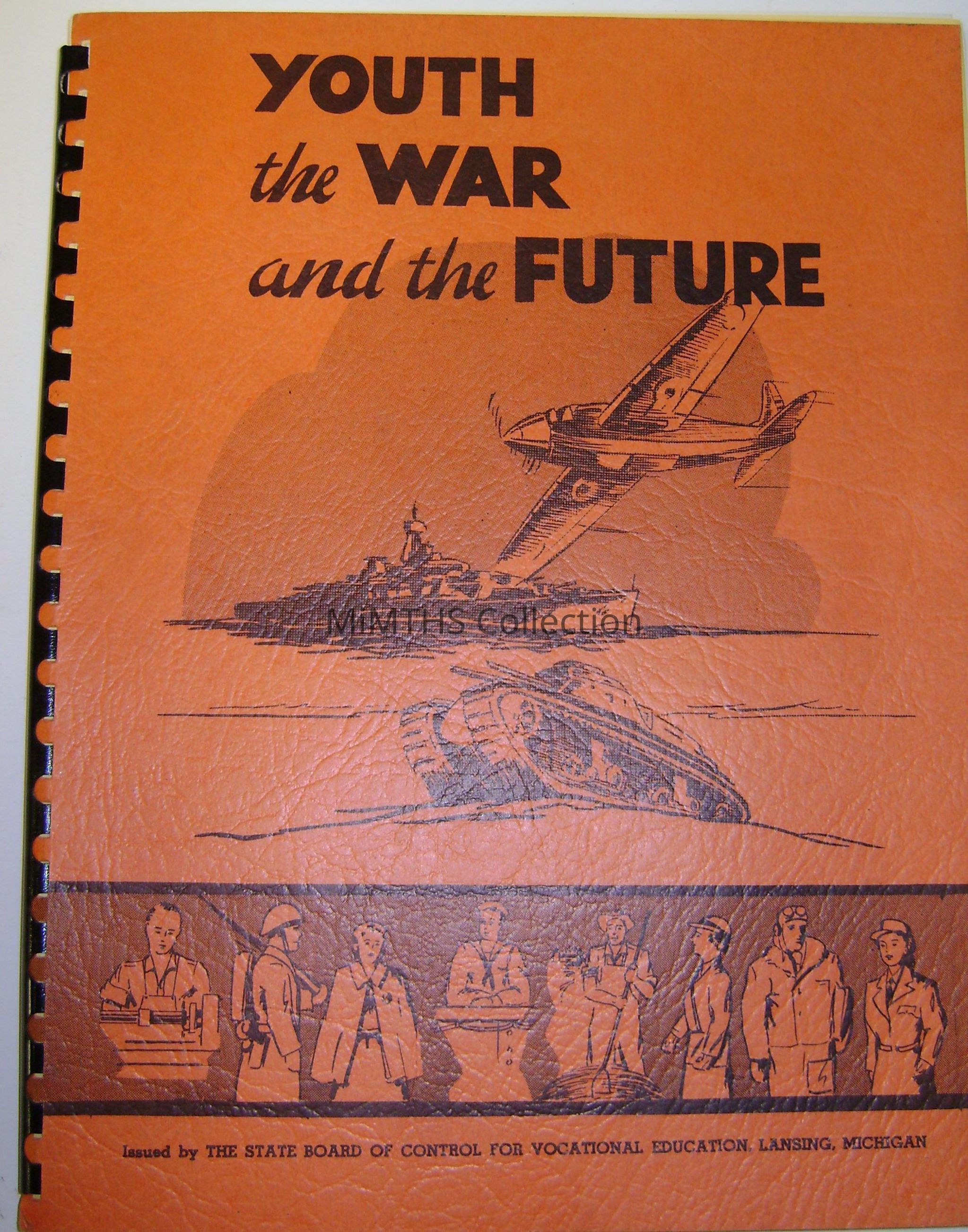 Spiral bound book on Youth, the War, and the Future. Published by the State Board of Control for Vocational Education, Lansing, Michigan 1943Cataloged By