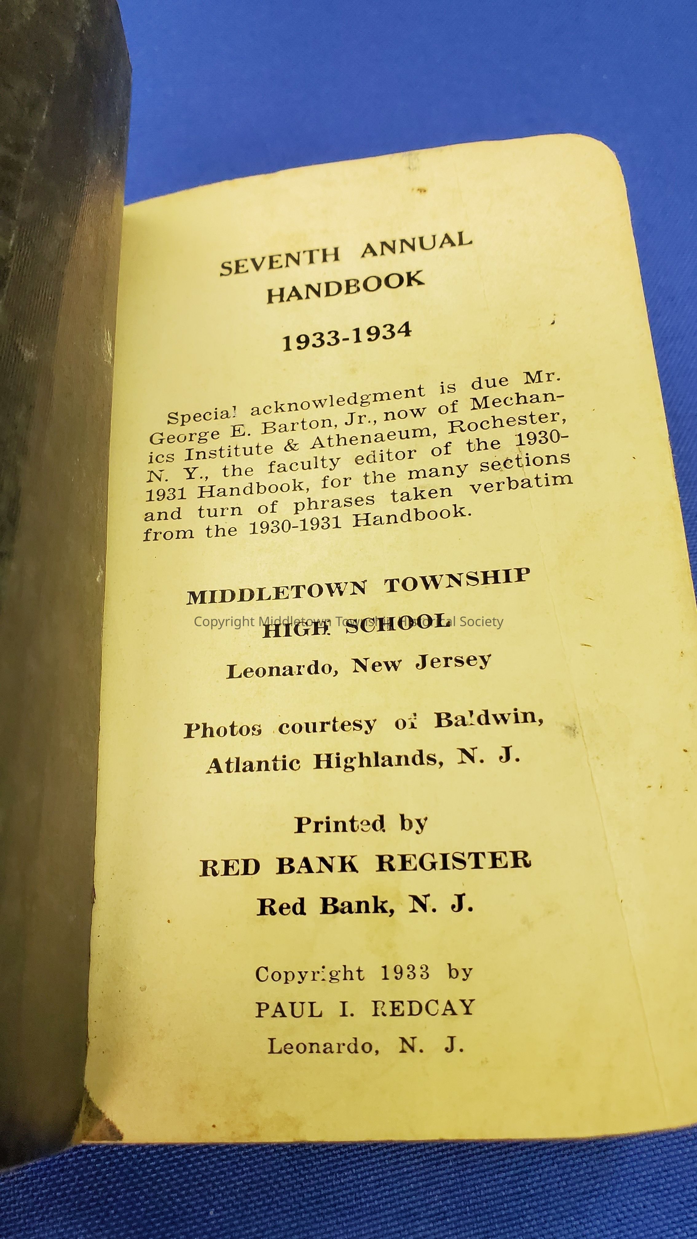 1933-34 Middletown Township High School HandbookDescription