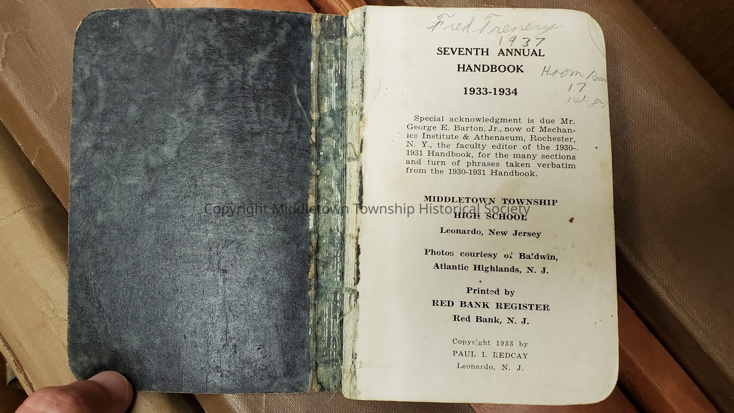 Seventh Annual Handbook for students of Middletown Township High School. Owned by Fred Trenery, who was a student in 1934 (though "1937" is written below his name).Acquisition