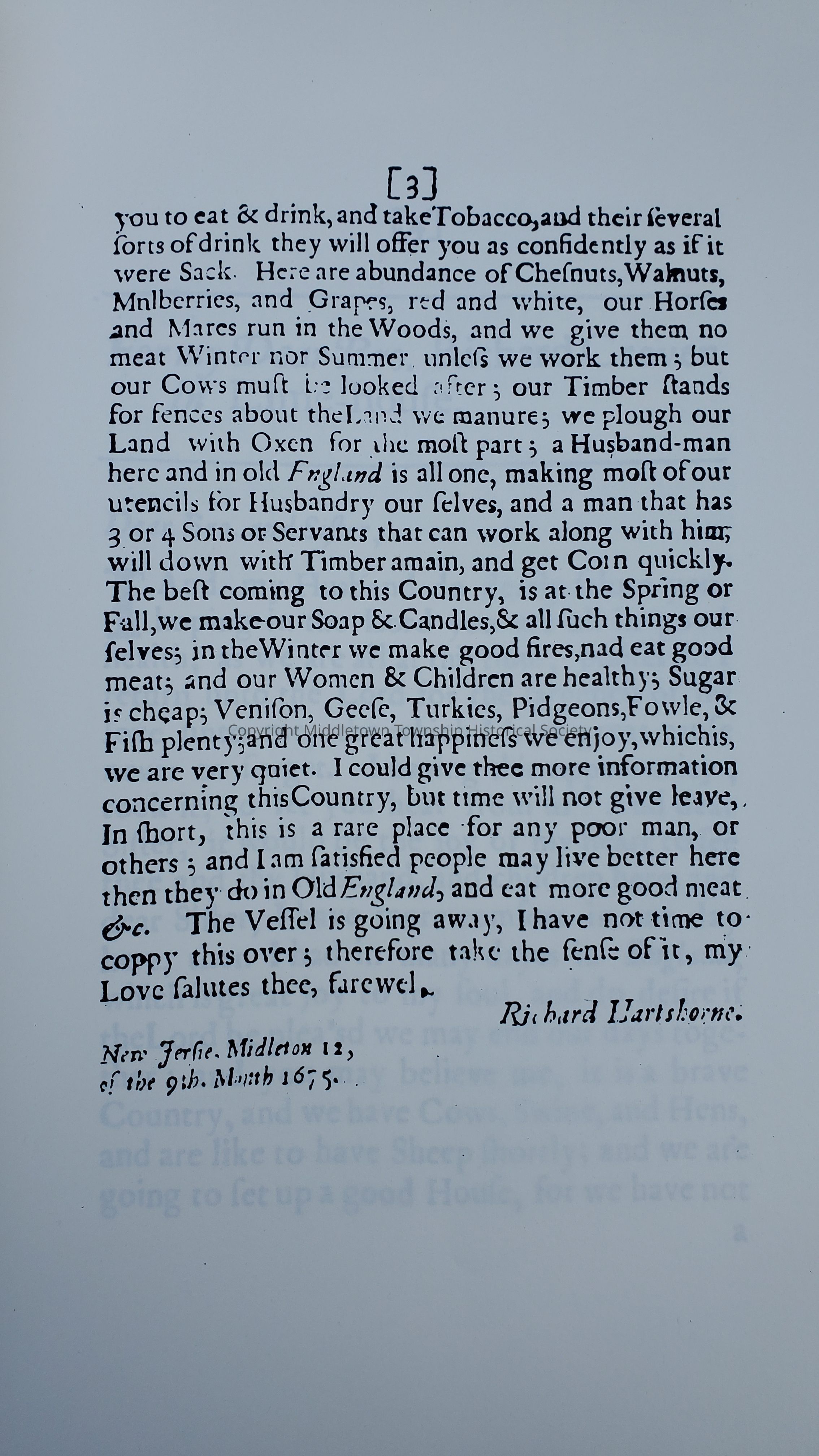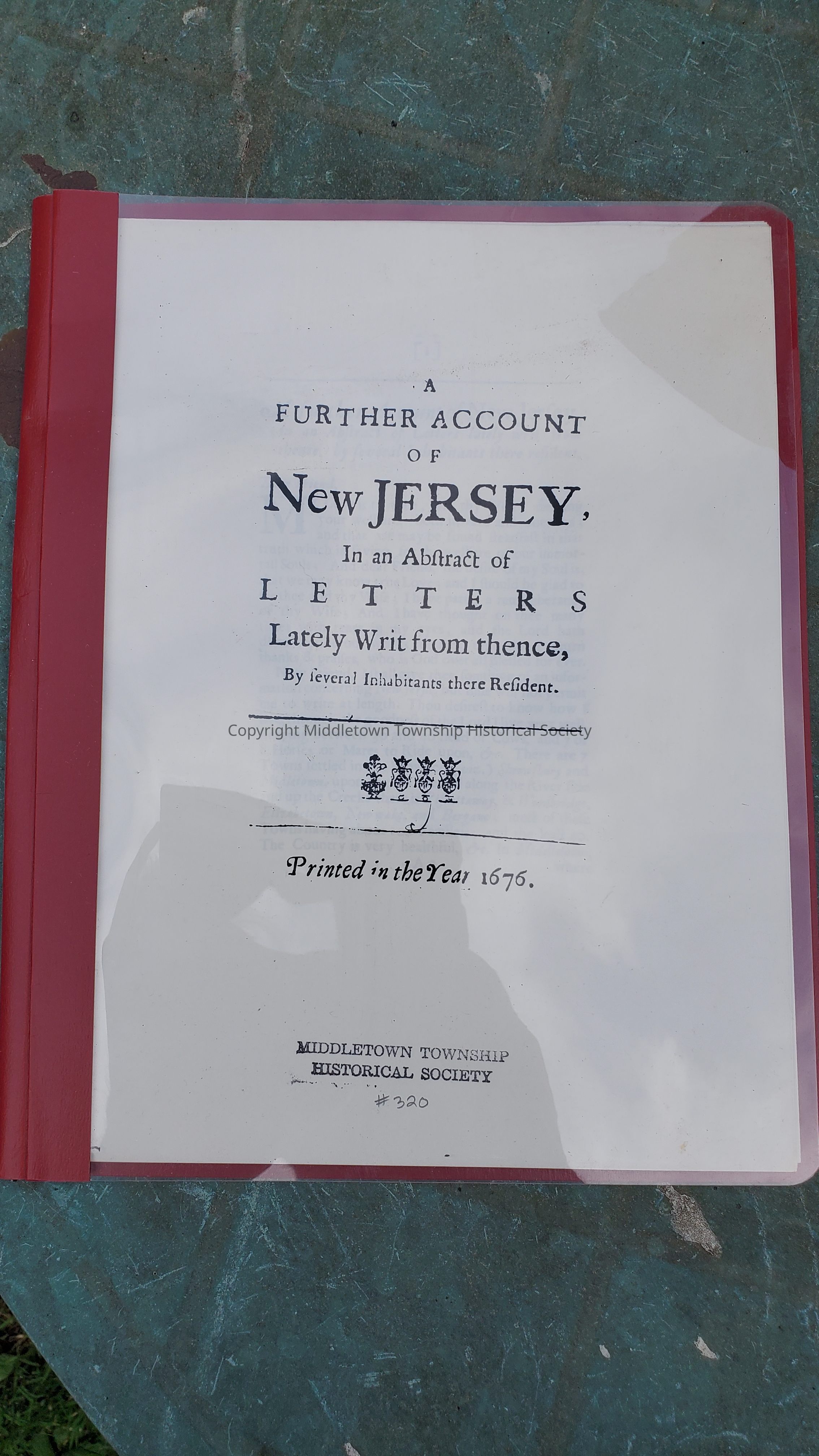 Photocopy of a collection of letters from early New Jersey residents, including Middletown's Richard Hartshorne in 1675.