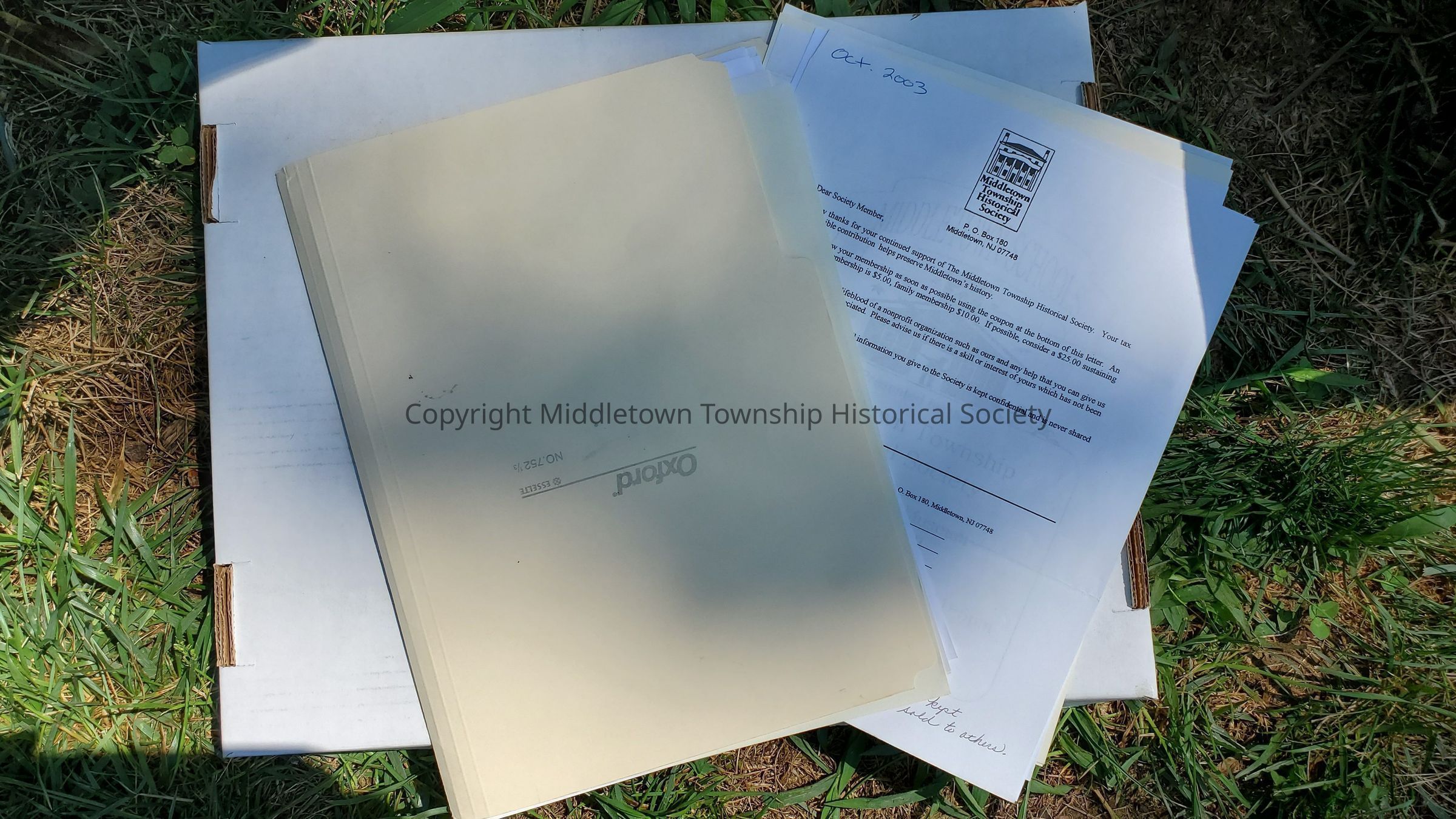 Membership forms, newsletters, and correspondence of the Middletown Township Historical Society from 1995 to 2006.Acquisition