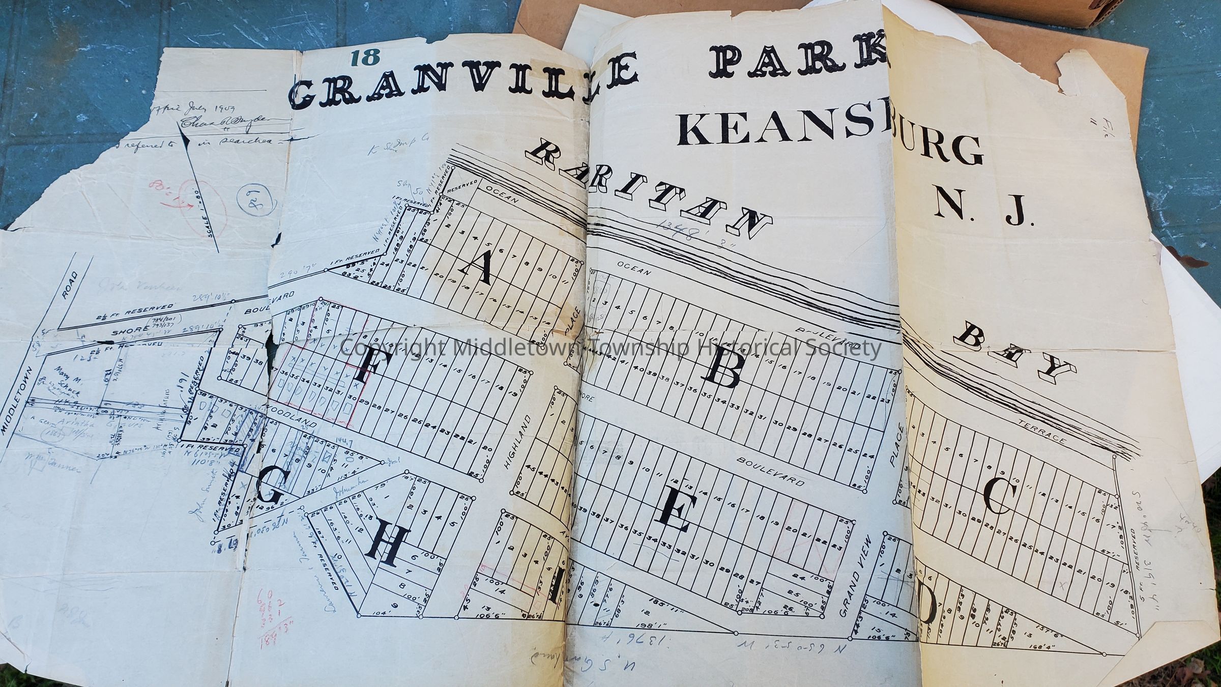 Layout of Granville Park development from 1909, when it was part of Middletown, not Keansburg. Also includes 1928 maps and various documentation.Acquisition