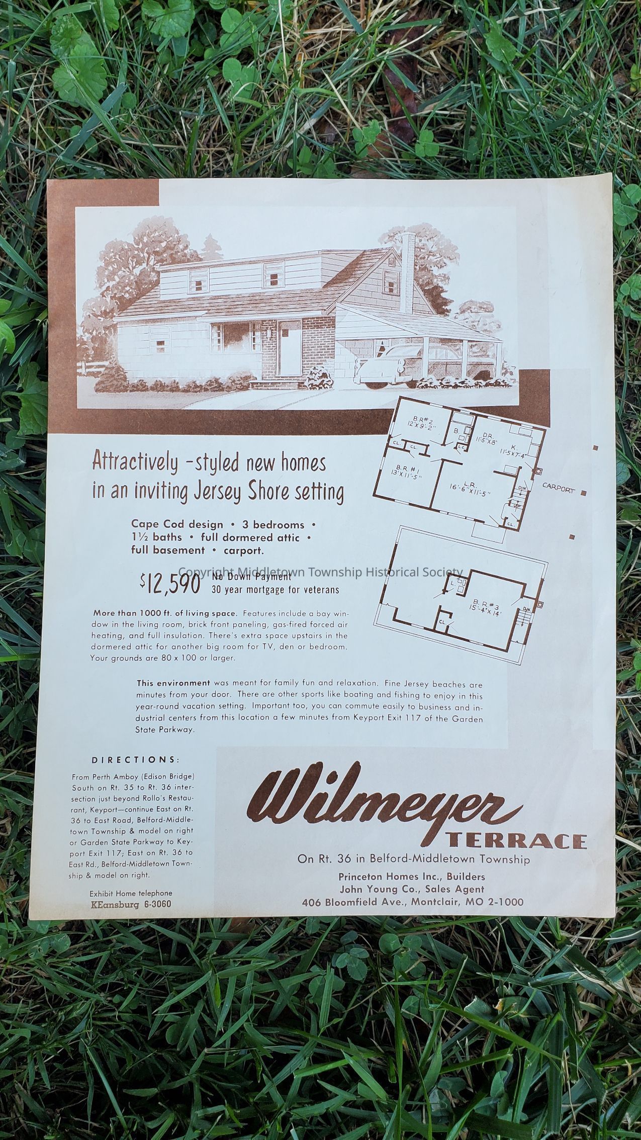 Flyer for the Wilmeyer Terrace development in Belford, located between Main Street and Hollie Drive. 1957-1960.