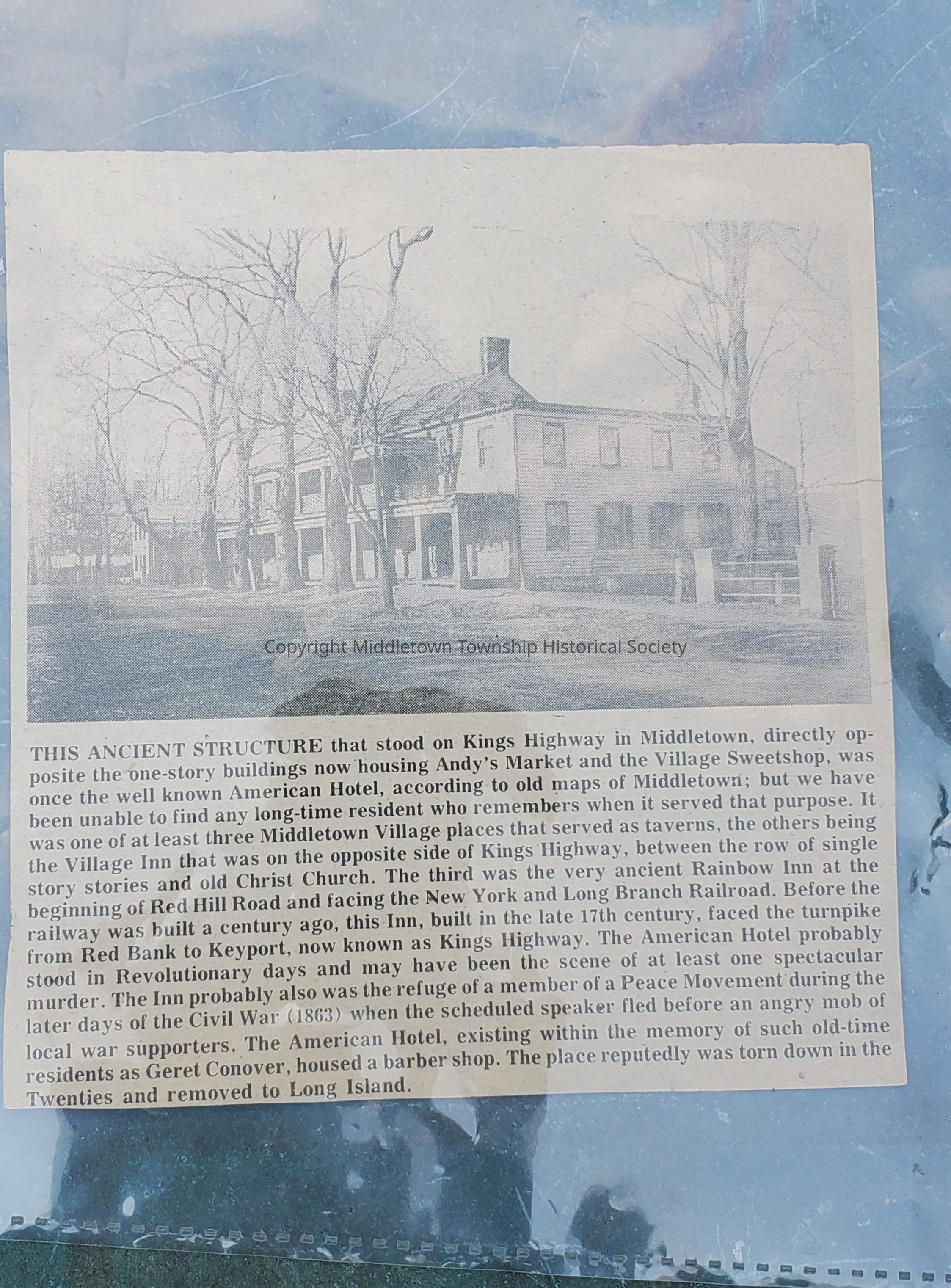 Clipping from The Courier newspaper (date unknown) showing the American Hotel on Kings Highway.