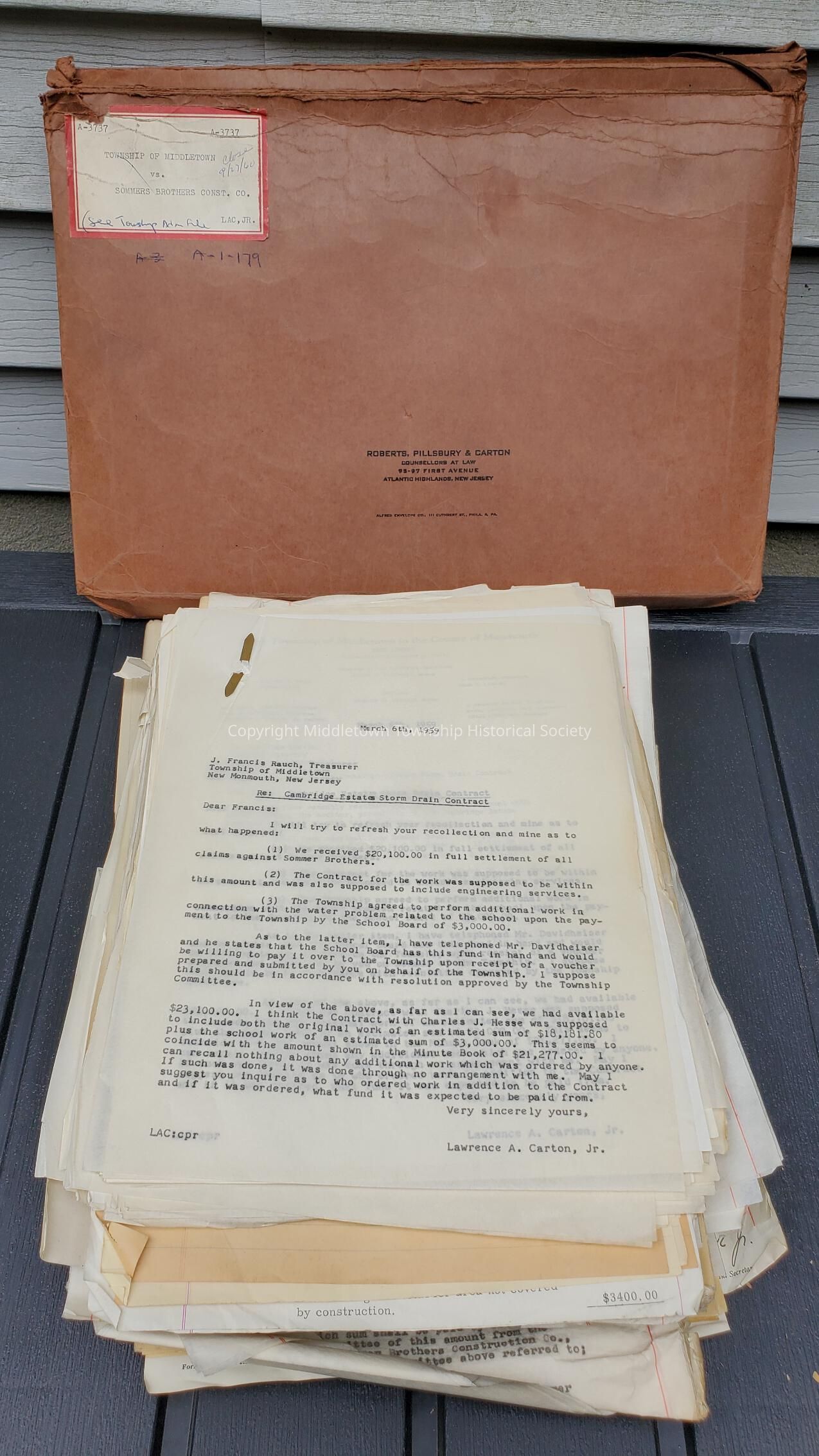 The file was gathered by the town or its attorney to document the many issues the residents and town had within this development: drainage, sewage, grading, unauthorized work in Bodman Park, etc.Archive Details