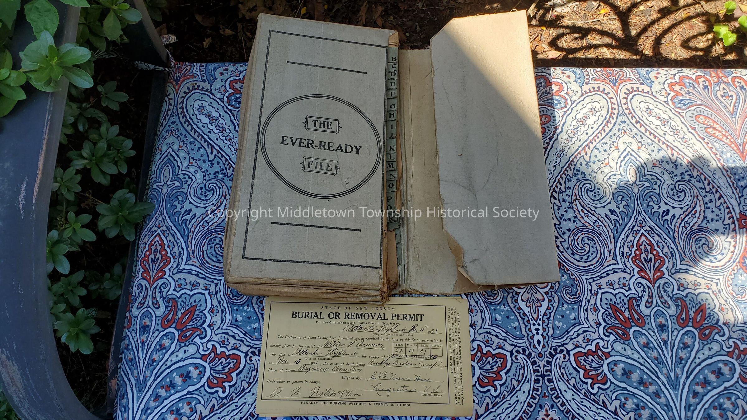 Alphabetized permits, stored in an accordion folder, permitting burial and moving of bodies. The permits contain the name of the deceased and birth date. Various years.Archive Details