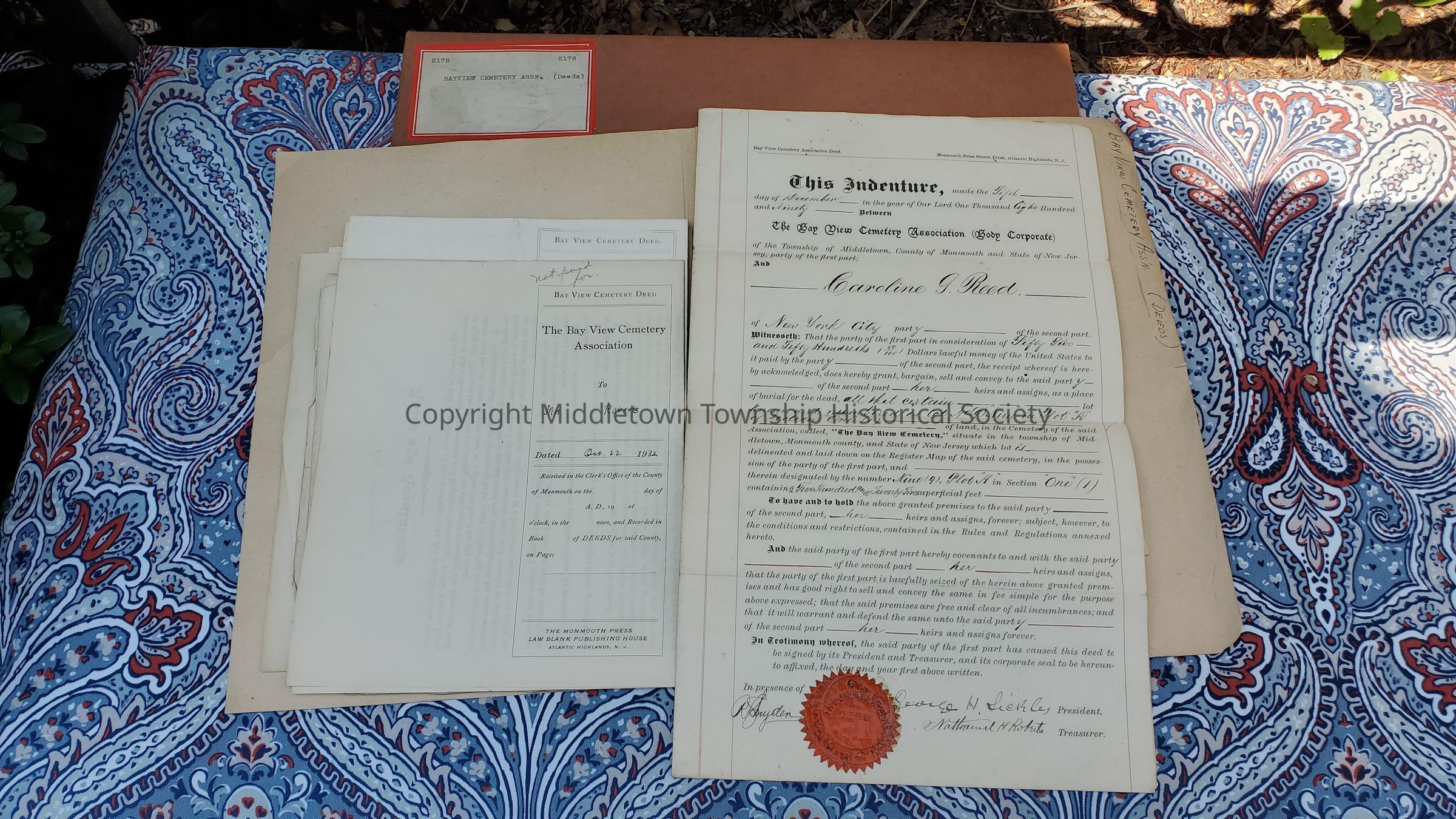 Bay View Cemetery Association DeedsScope and Content