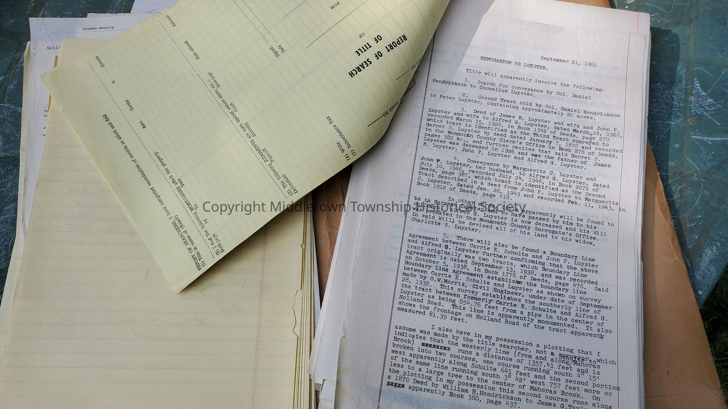 1961 title search for a conveyance by Colonel Daniel Hendrickson to James Luyster.Acquisition