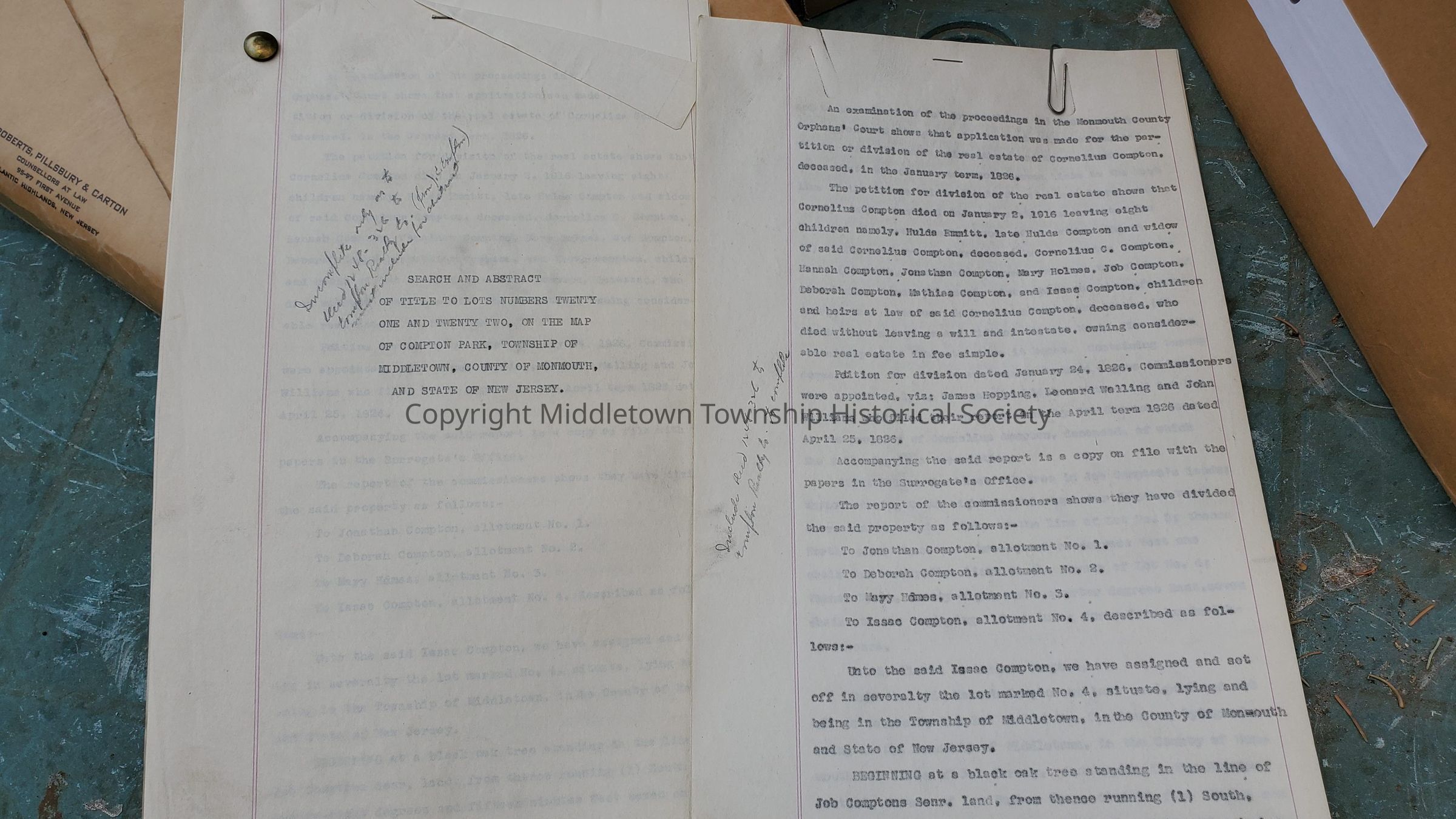 Title searches from 1896 to 1924 concerning a development known as Compton Park.