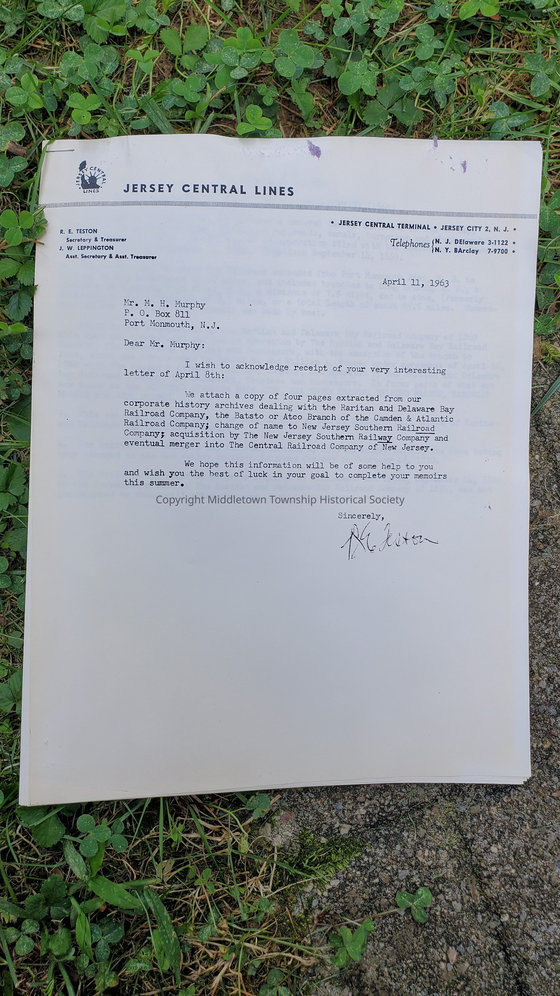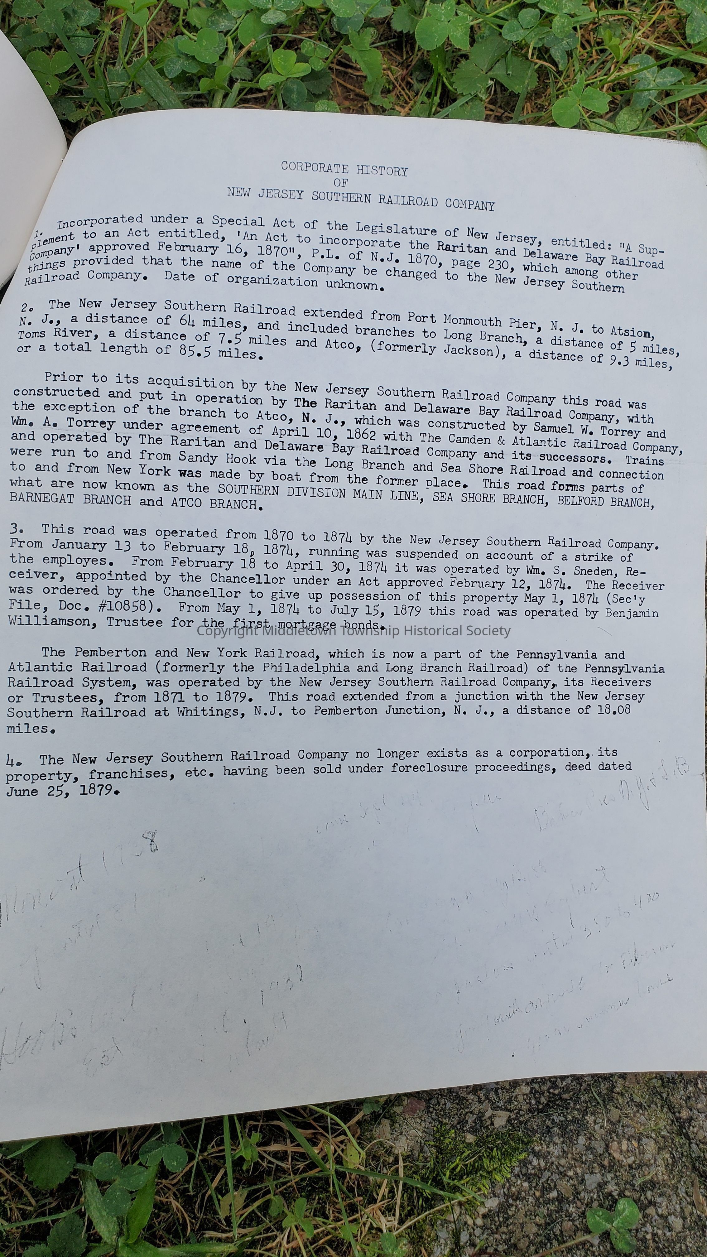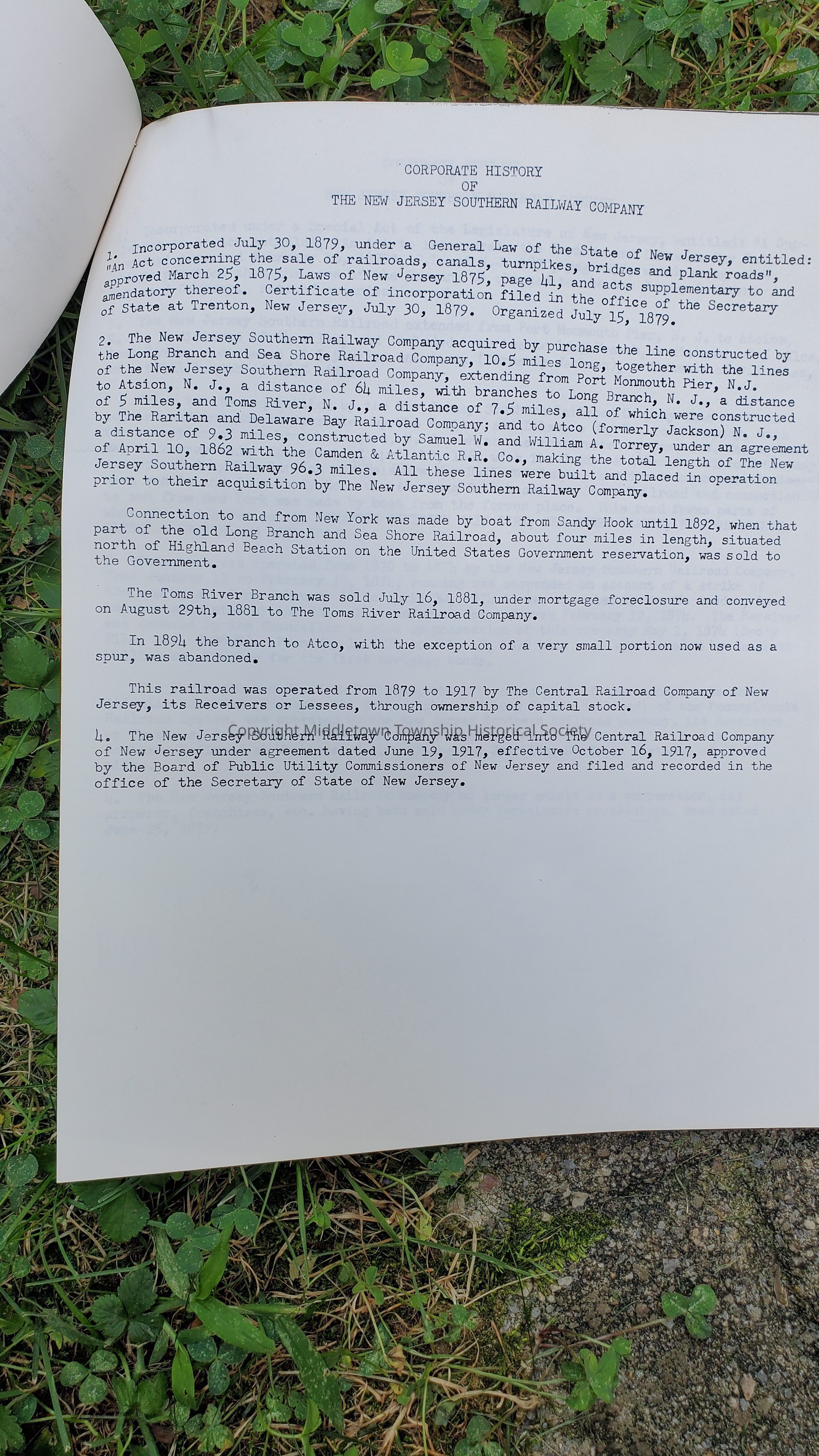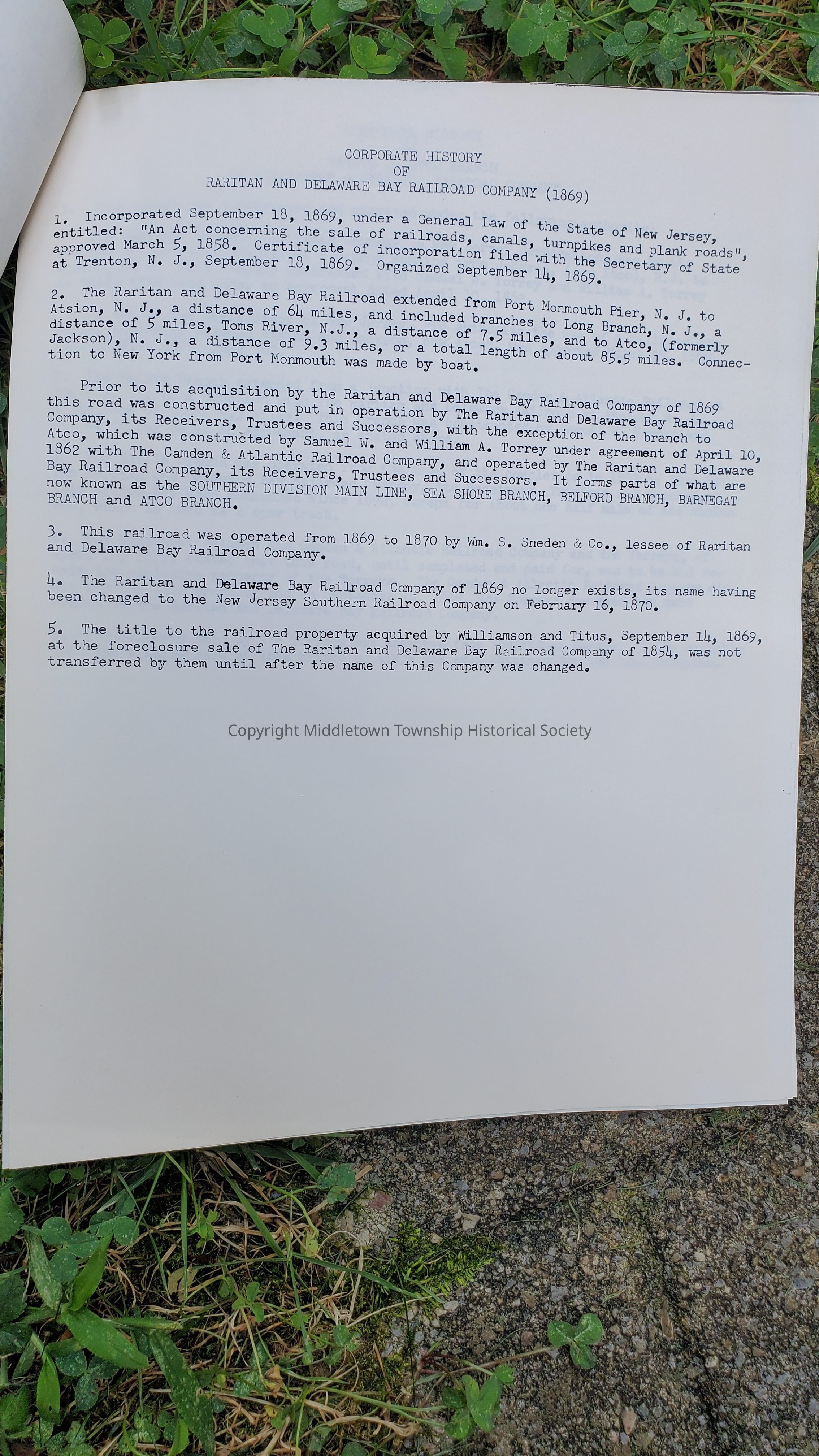 Histories of railroads acquired by Jersey Central Railroad, as written by the company in 1963.