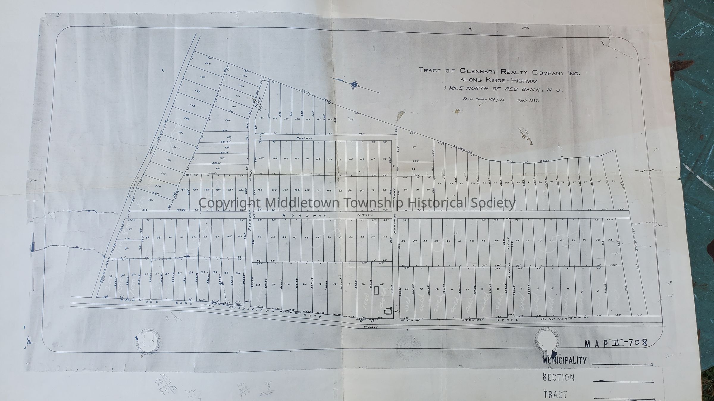 Collection of maps of the Glendal Park development, also known as Stephenville and Shorecrest. Includes onion skin map of land of W.B. Lloyd from 1921, 1923 lot map, a map of Fairview, Heddons Corner, and Riverside Heights (undated), street map showing treatment plant (undated), Glenmary Realty map from 1923, map of vacated streets from 1953. Also includes deeds.Acquisition