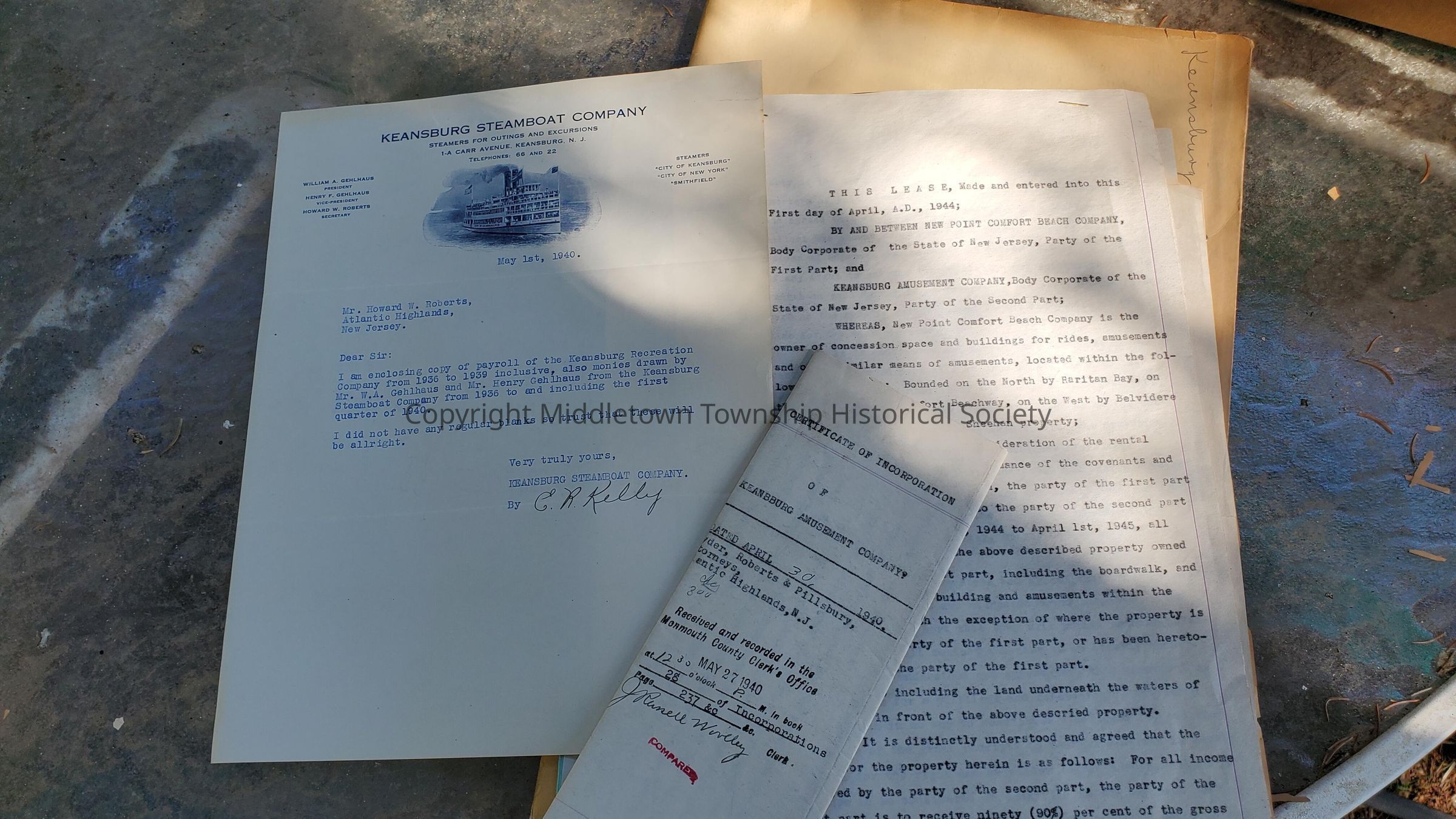 Contains incorporation documents, leases for boardwalk, docuemtns of New Point Comfort Beach Company, employment report of Keansburg Recreation Company, and documents of Keansburg Steamboat Company.Archive Details