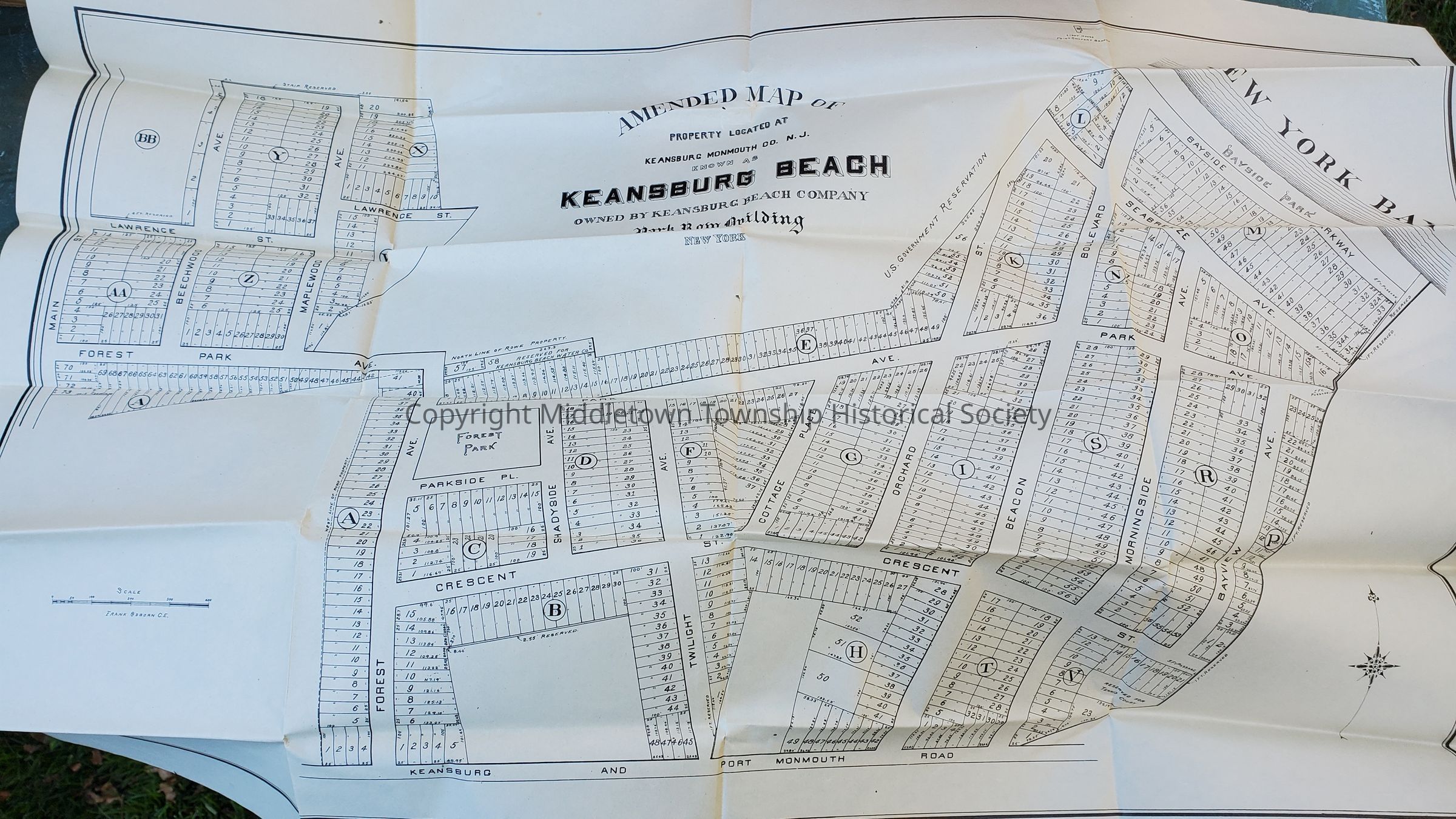 Map of Keansburg Beach development from 1908, when it was part of Middletown. The development was renamed Beacon Beach Association, and includes a title search from 1965, and bylaws from 1921 and 1944.Acquisition