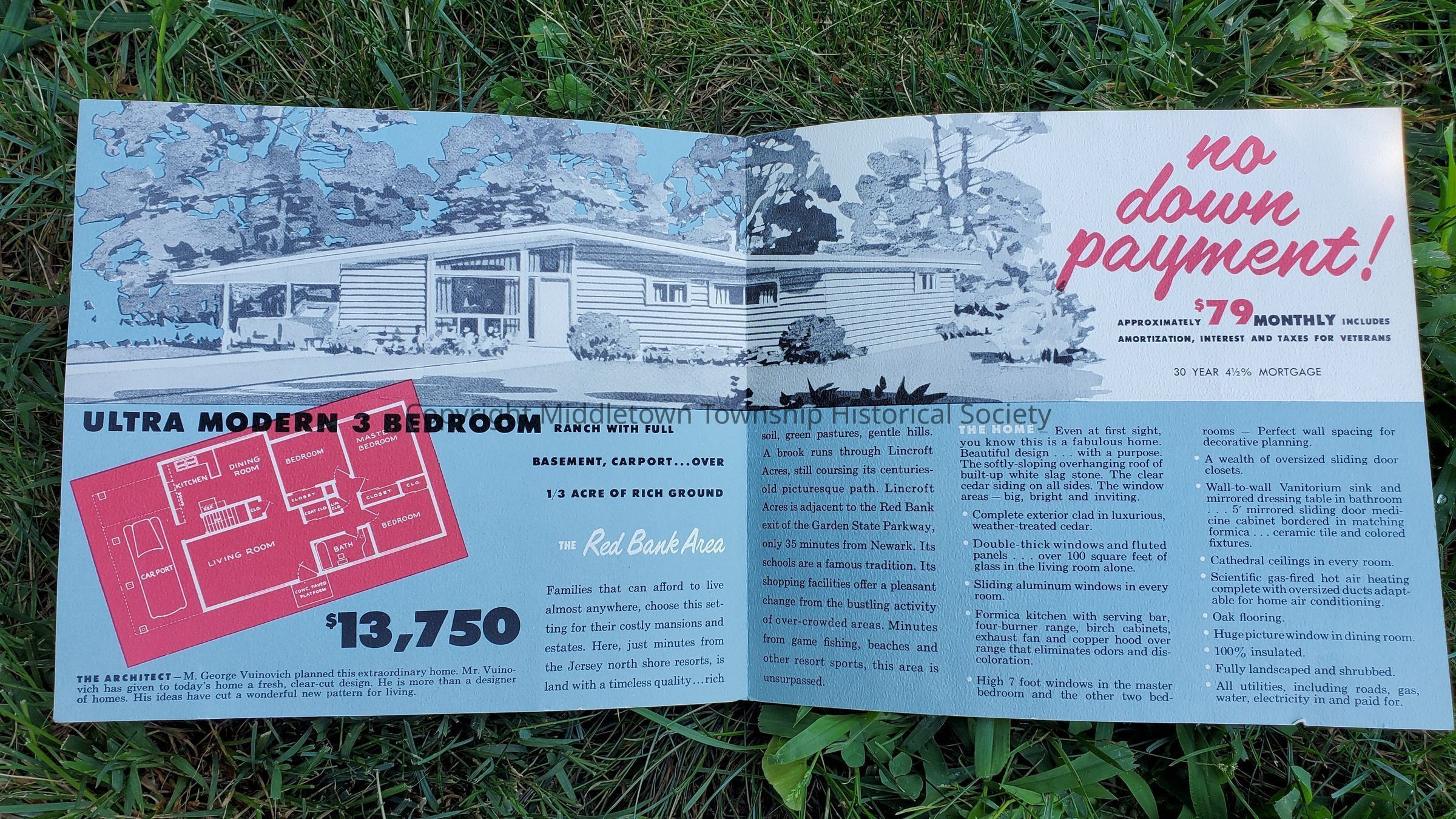 Brochure for development occupying Parkview Terrace in Lincroft. From 1954.