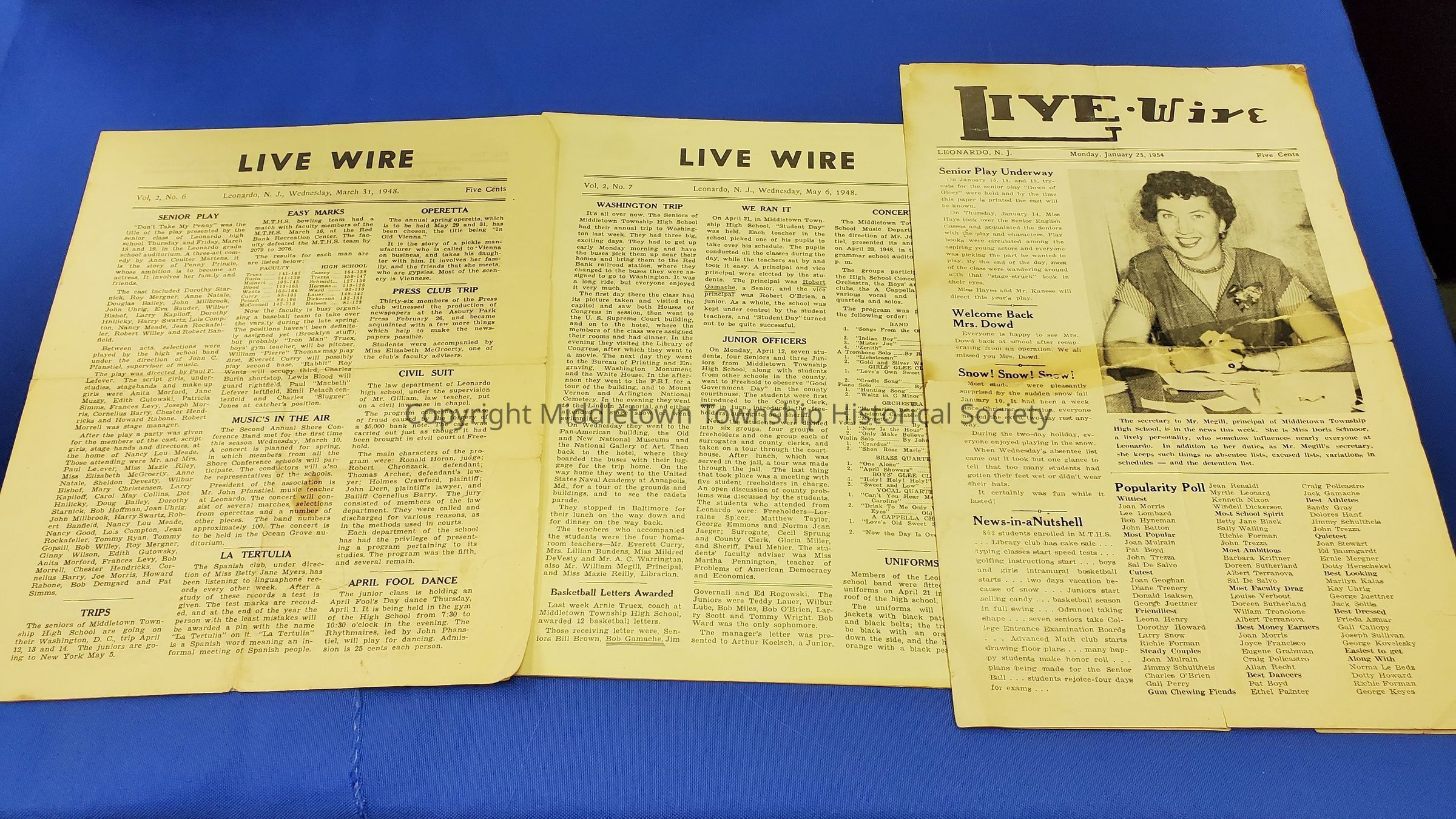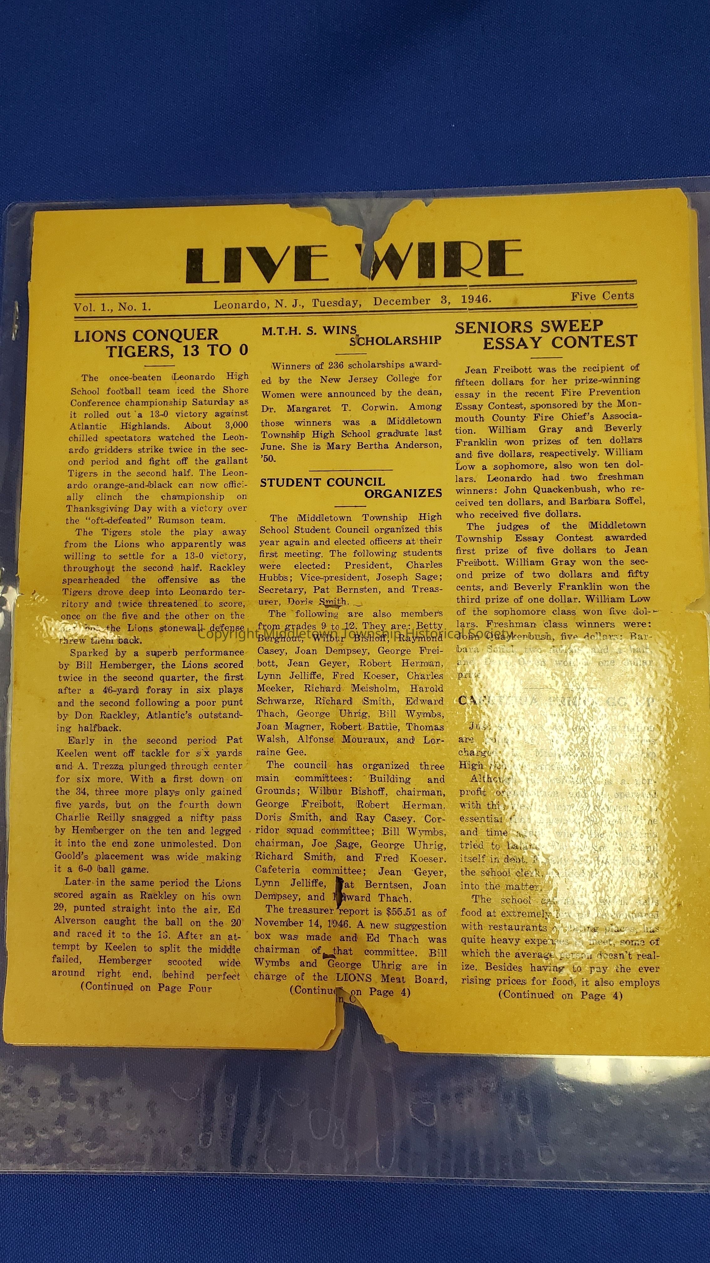 Four issues of the Live Wire newspaper from Middletown Township High School, including its first one from 1946. Each is 4 pages.Acquisition