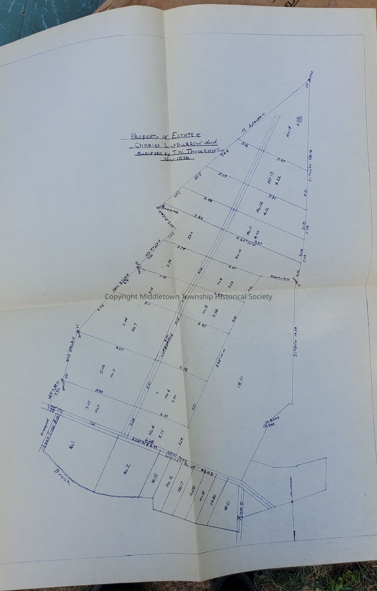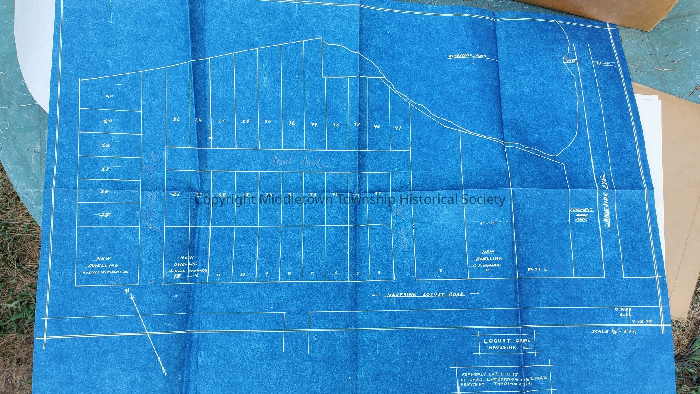 Map from 1948 showing the Locust Grove development at Locust Point Road and Lakeside Avenue in Locust. Shows roads never built and Firemen's Pond and Park. Map from land of Charles Lufburrow estate also included, which shows more land on opposite side of street.Archive Details