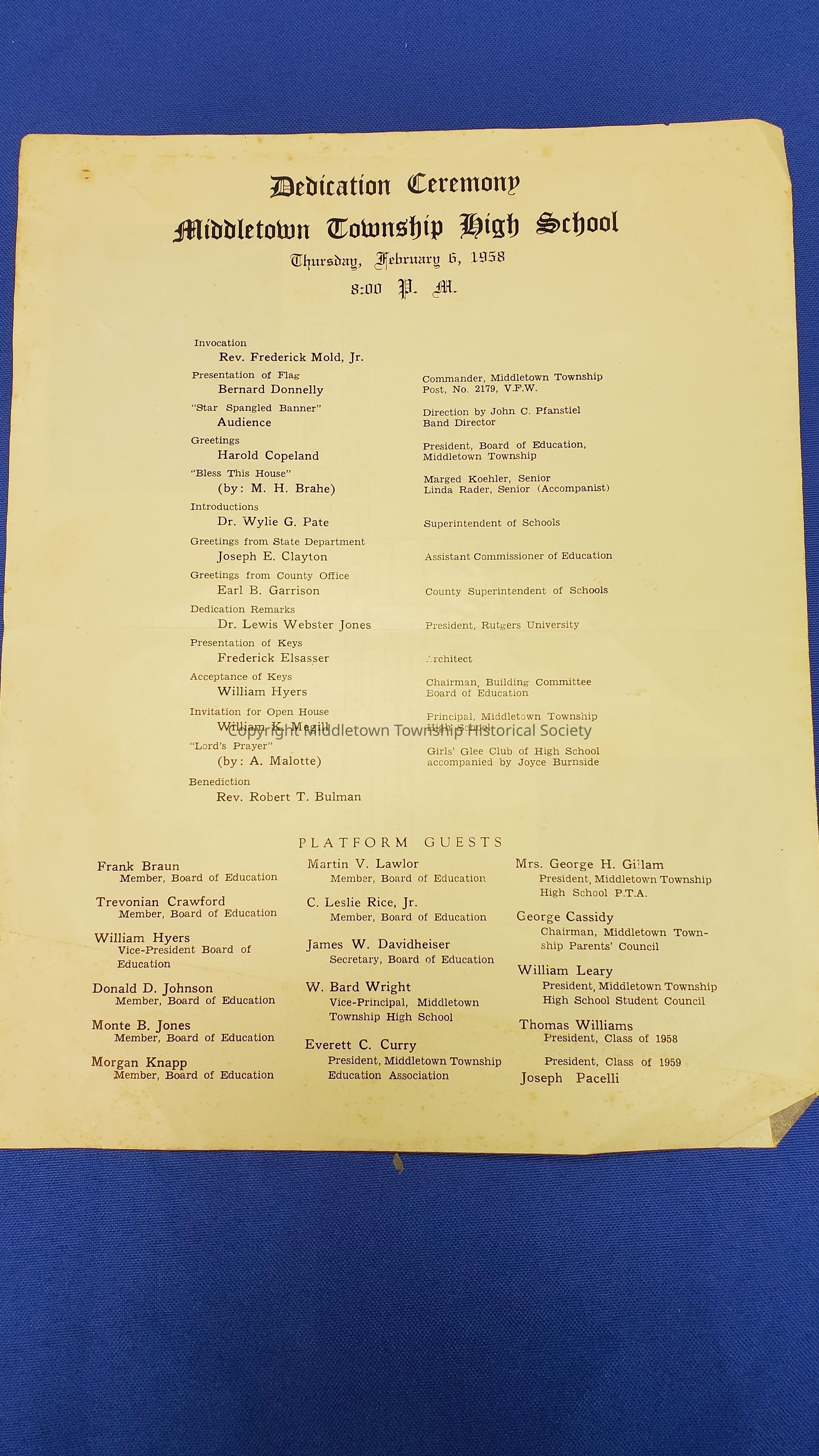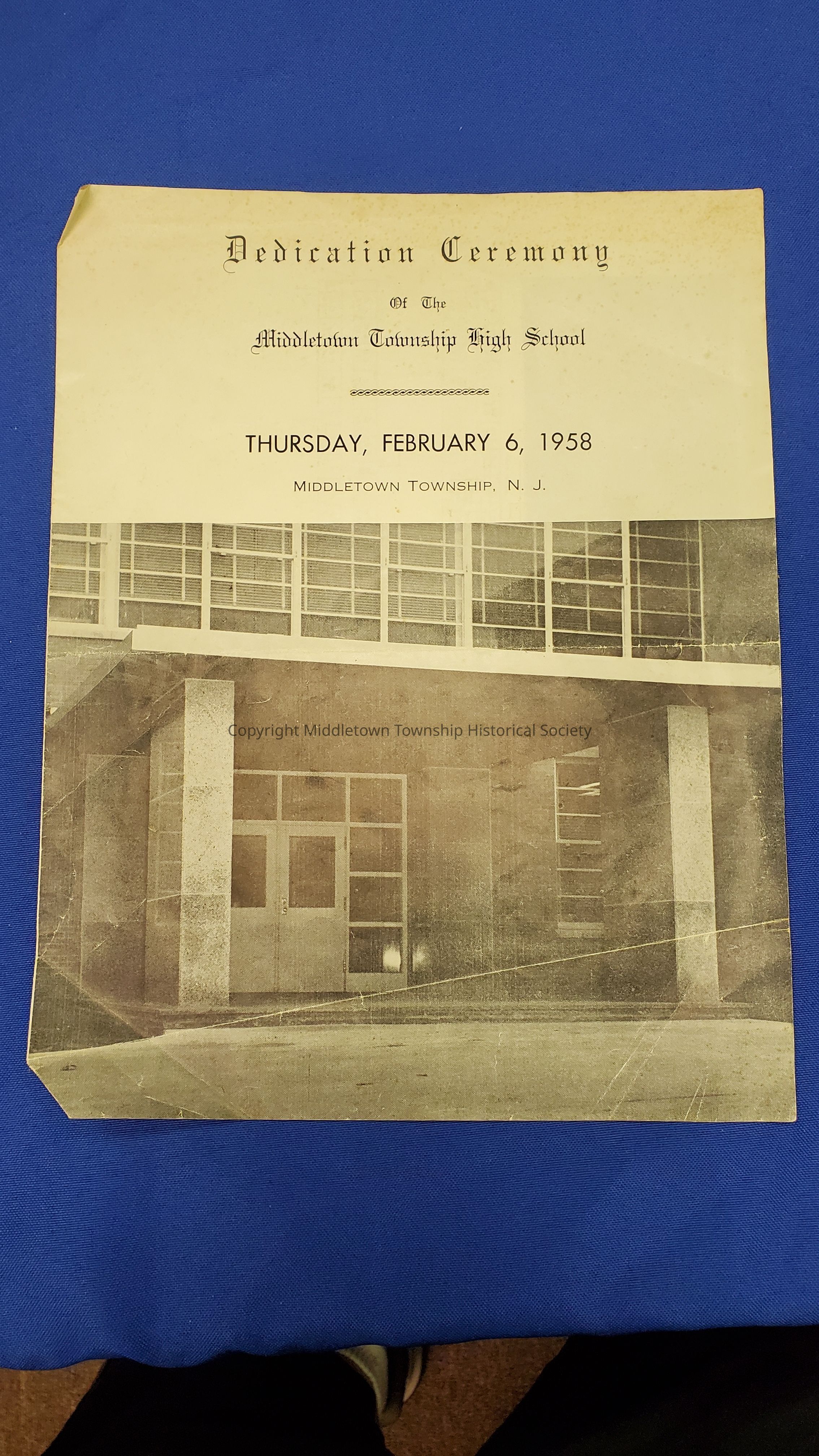 Program from the dedication ceremony of Middletown Township High School on February 6, 1958.Acquisition