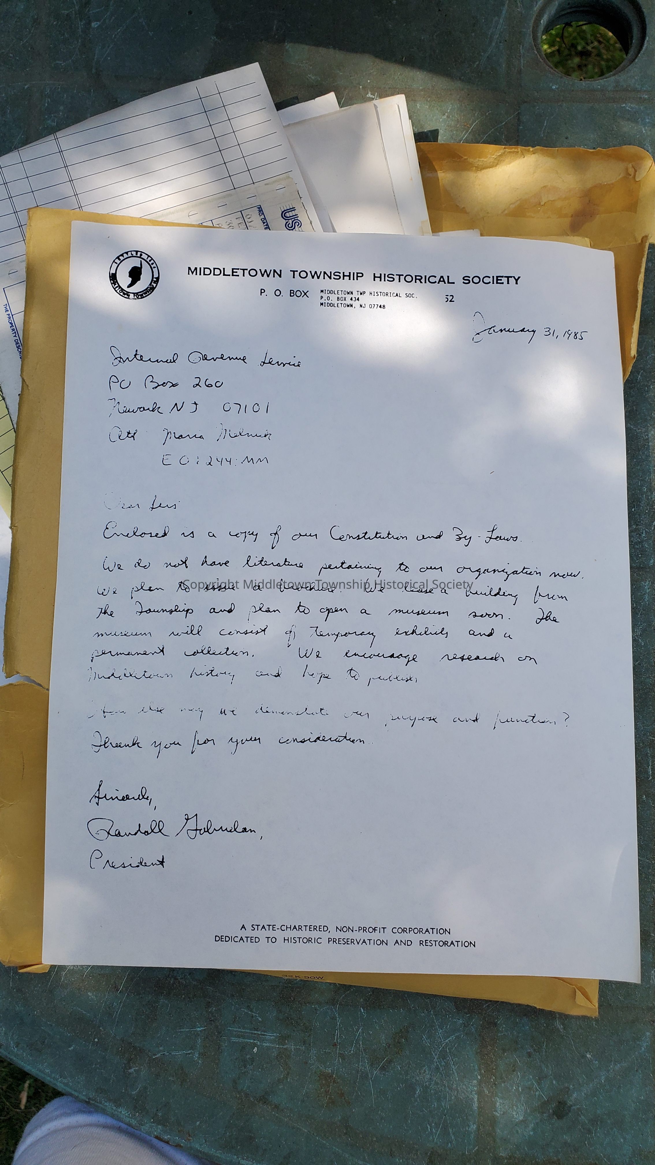 Mid-1980s bills (telephone, printing, etc.) and IRS correspondence of the Middletown Township Historical SocietyAcquisition