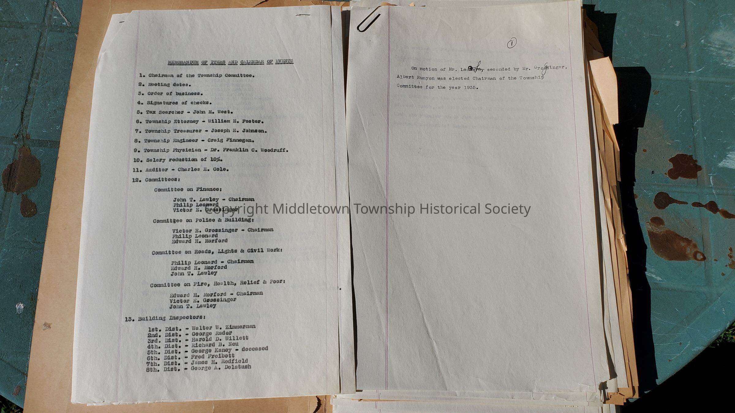 Lists of township officials and committee members from 1935 and 1936.